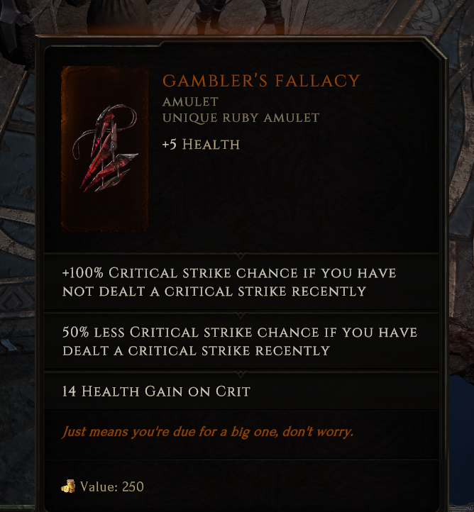 Here, the market demands nonlinear value: you're hoping for the whammy.That’s a guaranteed critical hit once every three seconds or so. If you build your resting crit high enough, the debuff doesn’t matter; but if you’re not doing a crit build, you’re probably attacking slowly enough that getting a guaranteed crit with such a high damage weapon every 4-5 attacks is an incredible boon. They’ll probably nerf it eventually but until they do I have six of them for my Sentinel, Sentinel, Primalist, Rogue, Rogue, and Mage. Yes, you can do melee builds with a Mage.