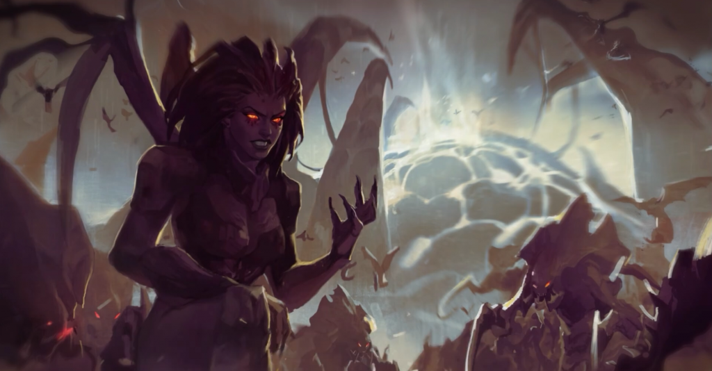 In the Zerg Campaign, the player is put into the, uh, giant slug shoes of a Cerebate, one of the lieutenants of the Overmind's will, on the volcanic planet Char. The Overmind gives the Cerebate a task of highest importance: To protect a mysterious Chrysalis at all costs until whatever is inside can hatch. Both Terran and Protoss forces are drawn to Char try to destroy the Chrysalis, which is emitting immense psychic power. After several waves of assaults, the Chrysalis hatches to reveal Kerrigan, transformed into a Terran-Zerg hybrid of immense power and championed by the Overmind to he the truest extension of his will on the battlefield.