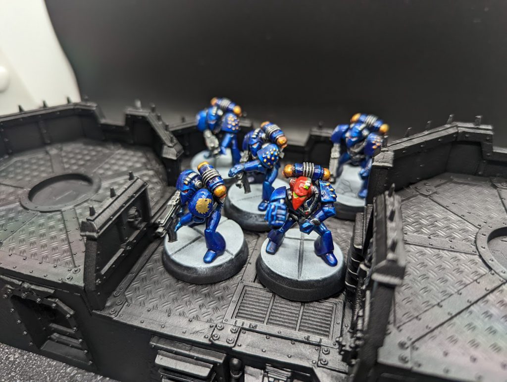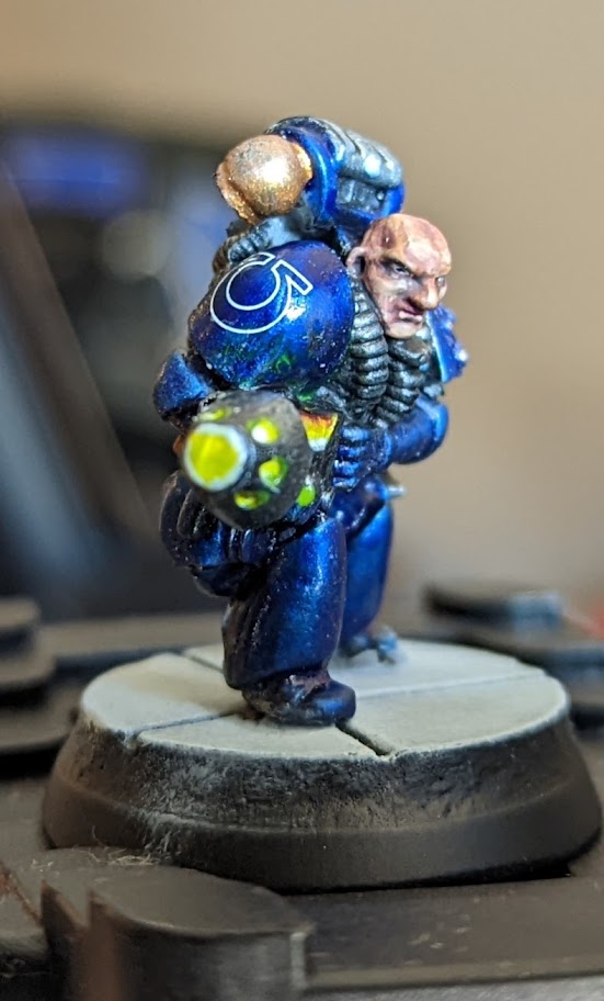 Credit: Kevin StillmanThe next full unit I finished was this Ultramarines Veteran Squad, which will double as a Kill Team for playing 40K. Notable because this squad is, as I mentioned in my NoVa Open Recap, entirely composed of RBT-01 Marines. There is also a Plasma Gun toting Marine with a ridiculous face.