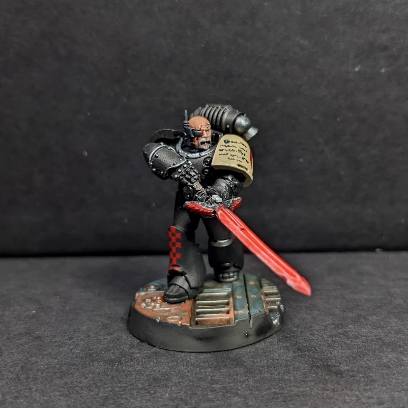 Raven Guard Chaplain/Praetor. Credit: NotThatHenryCI have made a tiny bit of progress on the Ravens. This will be a Chaplain/Praetor. He's based on Zephon and Dark Fury bits. He's getting put away again till the Titan is finished though.