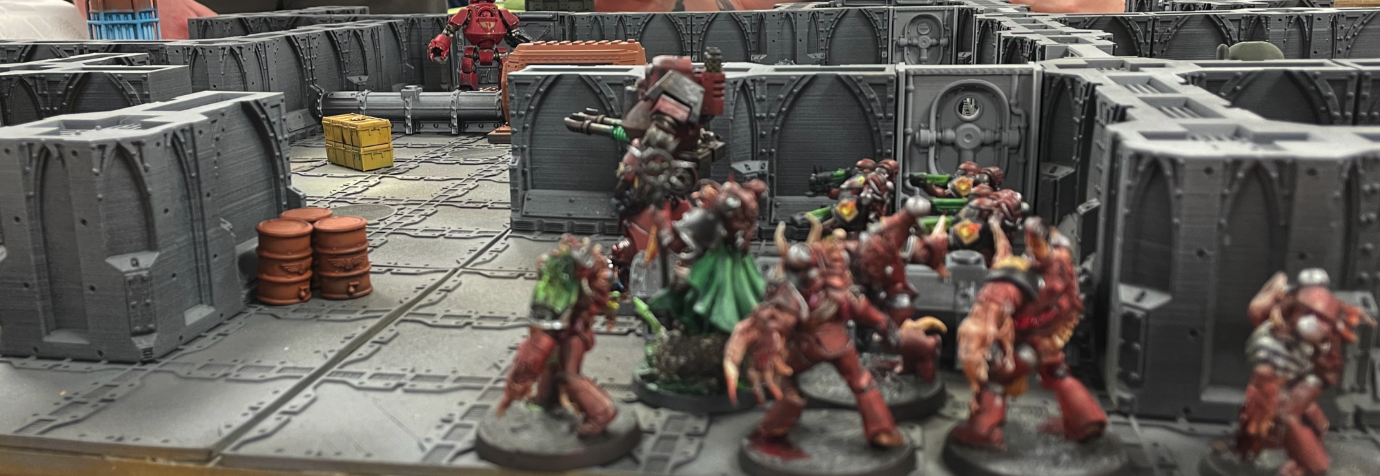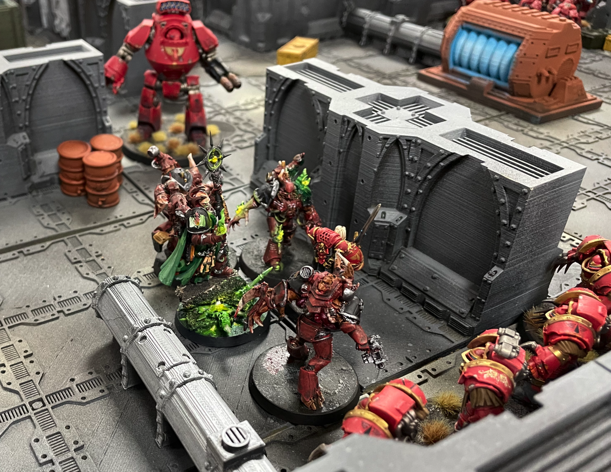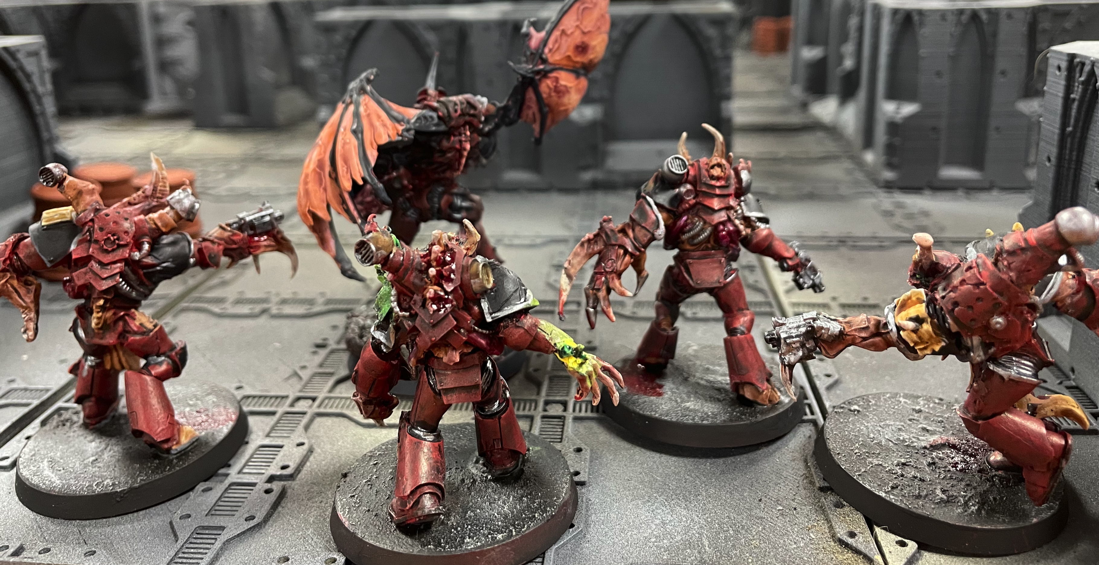 Word Bearers vs Death Guard vs Blood Angels - Credit: RichyPI didn't win anything, but I was really happy when my Diabolist exploded the Contemptor and took the remaining wound off the Blood Angel Praetor on the same turn. Also, while not super effective I did decide to "go all in" on Gal Vorbak as they were fun but less effective Terminators, so next month expect some more of them in the update.