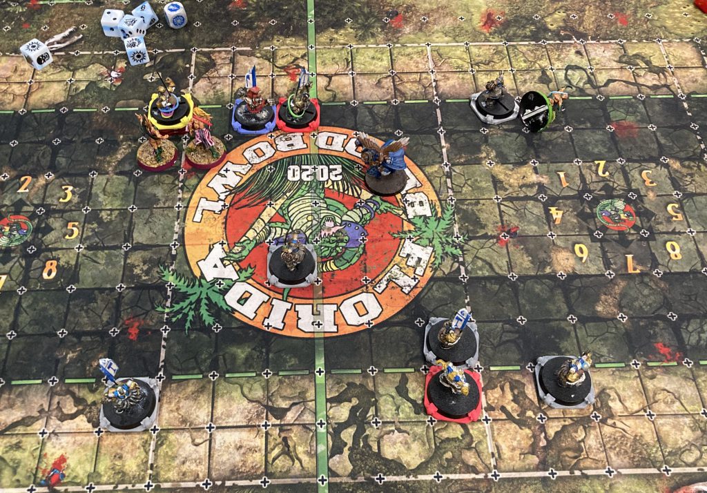 Two of my three elves still on the pitch base the ball carrier. It doesn’t end well for them.Result: 2-2, Draw