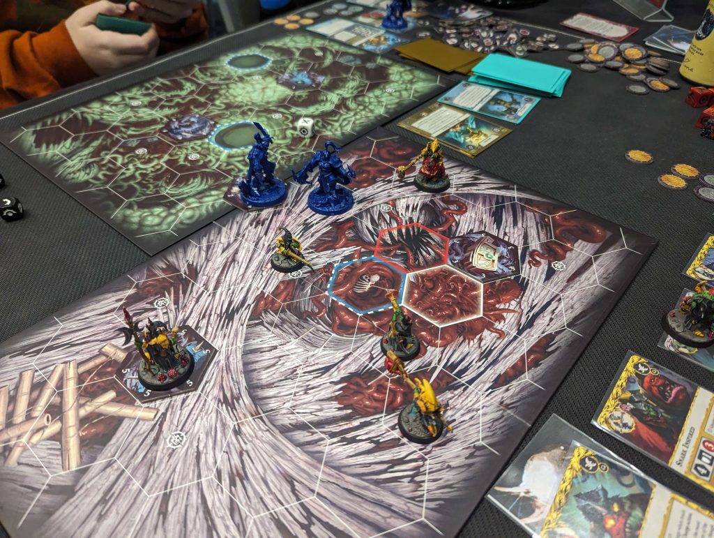 Neither of our decks especially cared about Objective hexes, so when I won the first roll-off, I elected to place the second board. I set up the long hallway, hoping that I could force him to come to me. Unfortunately for me, this strategy worked.