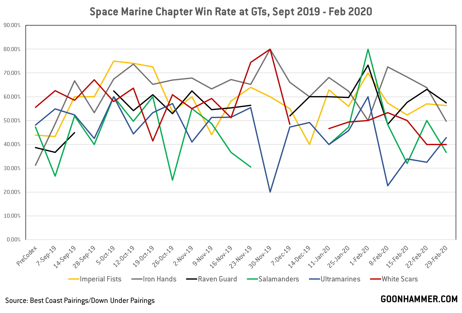 Falcon: Just to put some perspective on this. Iron Hands at their peak sat around a 30% TiWP and a 2.9 average first round loss. Marines as a whole made up just over 40% in that regard.