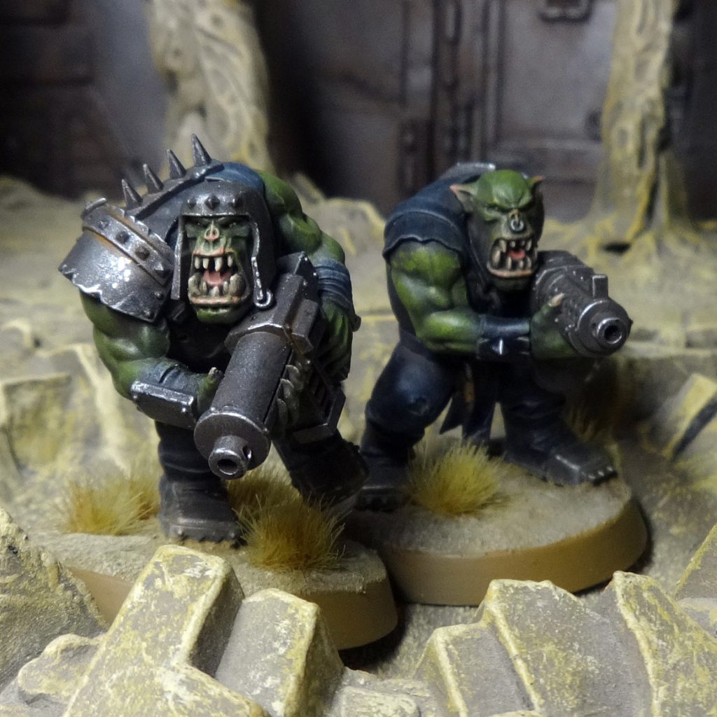 If you're curious about the method I used to paint the Goffs pictured here, the method would work fine for any Ork clan, and takes about one hour per Ork. If that sounds agreeable, I wrote up the method over on the Beard Bunker a few years ago.