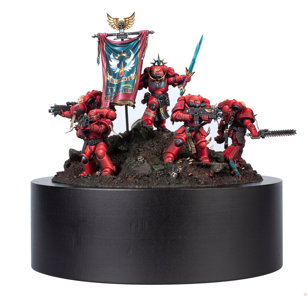 Andy Wardle's Golden Demon Winning Blood Angels - credit: Golden Demon CompendiumI use an airbrush to basecoat and highlight my Intercessors and then it's off to work the process. I'm a sicko who loves edge highlighting marines and so the repetition brings me to a really calm and happy space when painting. I've painted well over 100 Intercessors and other units in MkX armor and I'm confident I'll paint many, many more.