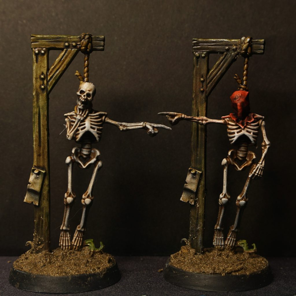 There's so much opportunity in these many tiny canvases and you'd struggle to go wrong. You can do them studio-style, with crisp lines and bone polished to a nice, clean white, or get nasty with it and make them look freshly risen from forgotten graves. They take washes exceptionally well, contrast especially, and you can have so much fun with exaggerated weathering. Rust and verdigris mixing together to create a story of how long these silly skeletons were stuck in the ground.
