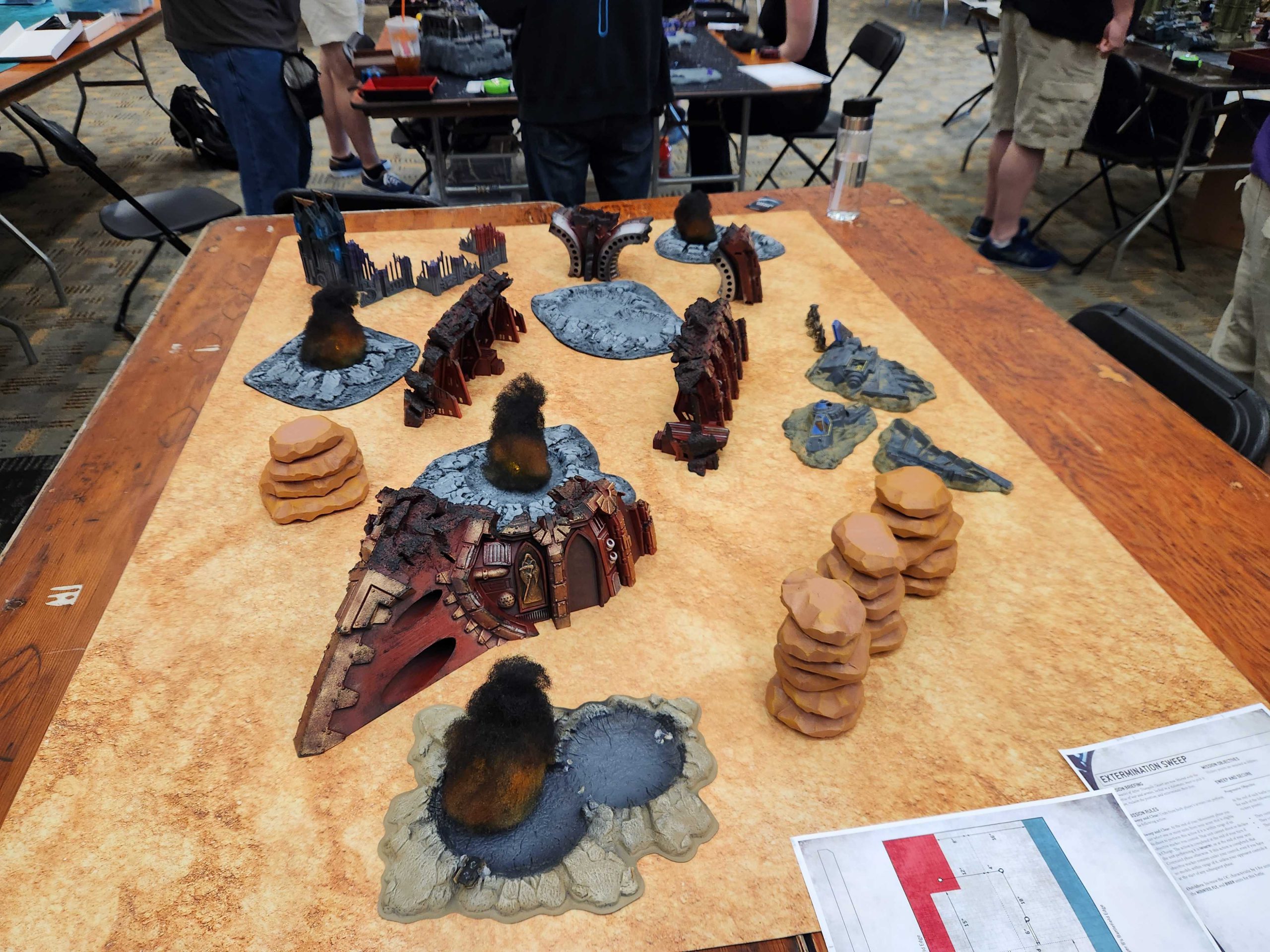 This table primarily has the remains of the crashed ship of Shanker Gord. There are weather effects here to represent the harsh desert conditions and irradiated wasteland the skip crashed in.What Worked: The terrain looked great and the mission itself was pretty straightforward. Not a ton was going on with this table but honestly that's fine for some players and tables.