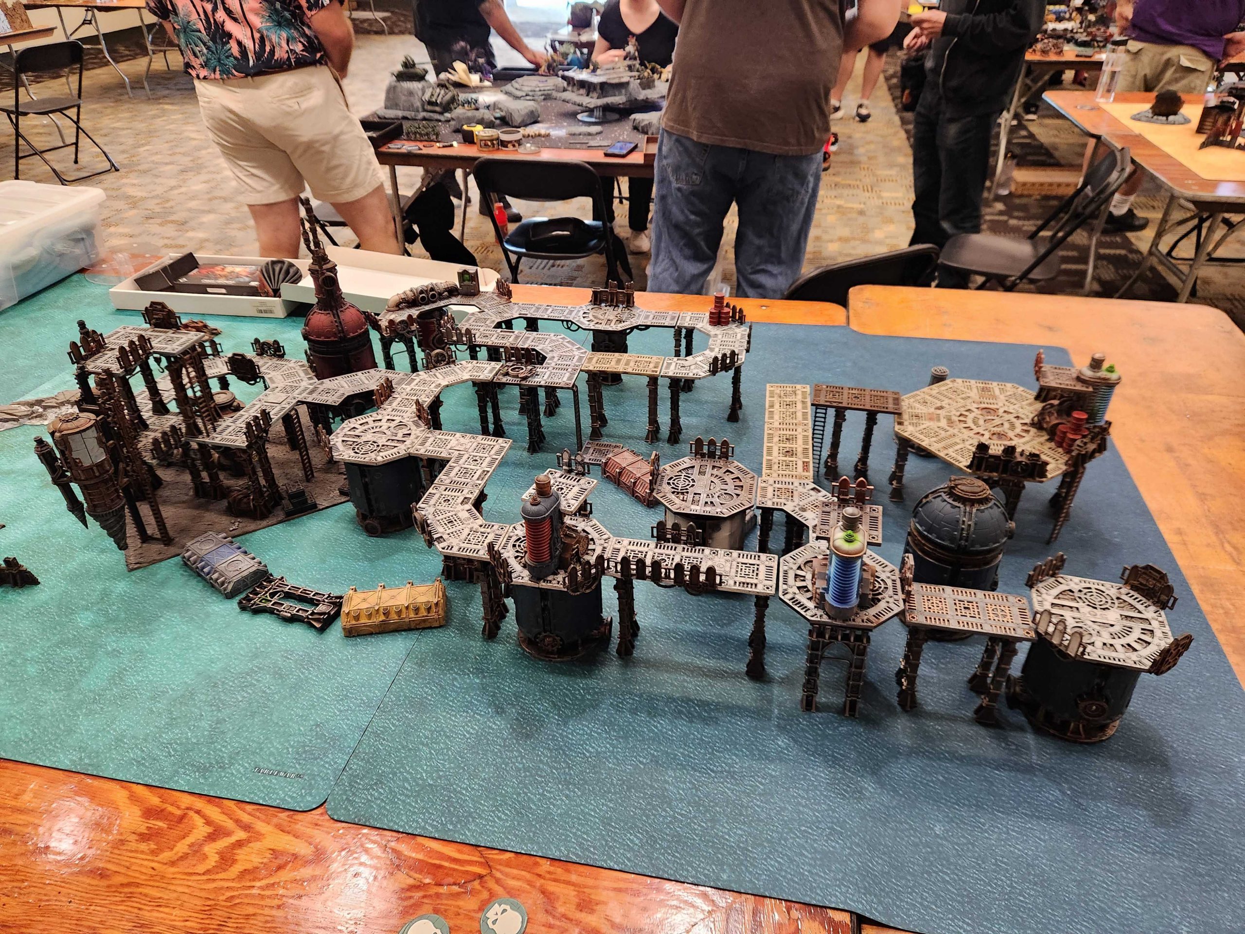 The refinery is a Sector Mechanicus board set out over the ocean. The board here *is* the mechanic, with only TITANIC and FLYING units being able to end moves over the water. The table itself here is massive - 9' in length - with a shore on the far end where some artillery can potentially sit and fire at the far end of the table.What worked: It's a cool table, visually, and players who had TITANIC and FLYing units did fine here.