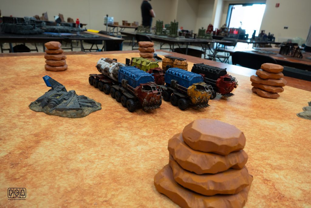 What Didn't Work: but the rolling road mechanics weren't amazing and the convoy missions needed a second pass to make them more reasonable. Ideally we'll set future convoy missions on a larger table and just let players go hog wild. On the Manufactorum board things were mostly fine but it was also a little boring compared to other tables.