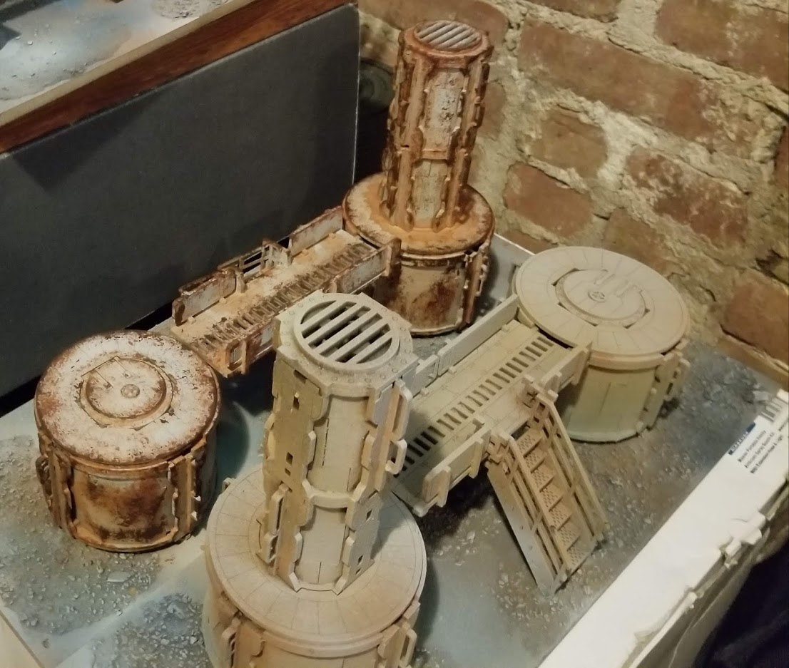 I needed quick solutions for my Necromunda campaign and wanted to share the following. No airbrushes were used in the making of this terrain!
