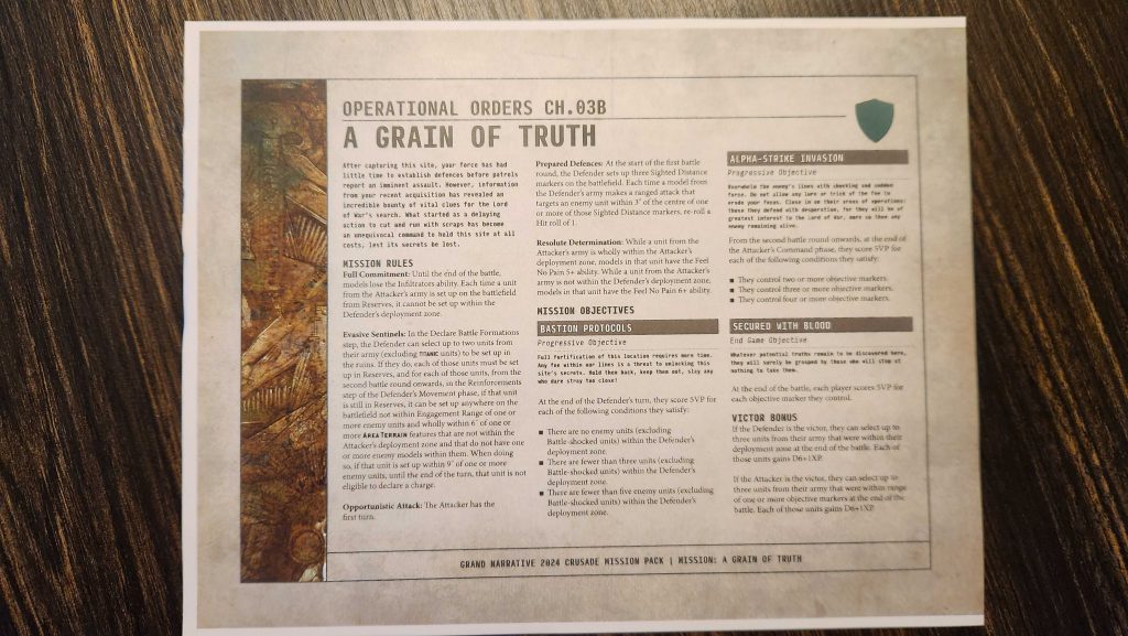There were six missions - with some twists - created exclusively for the Grand Narrative. These are, on the whole, pretty wild - though that's not necessarily a good thing. They do some things we haven't seen before, especially in tenth edition, and if you're looking for some Crusade missions that don't rely on Leviathan or Pariah Nexus mechanics, these are your only option.