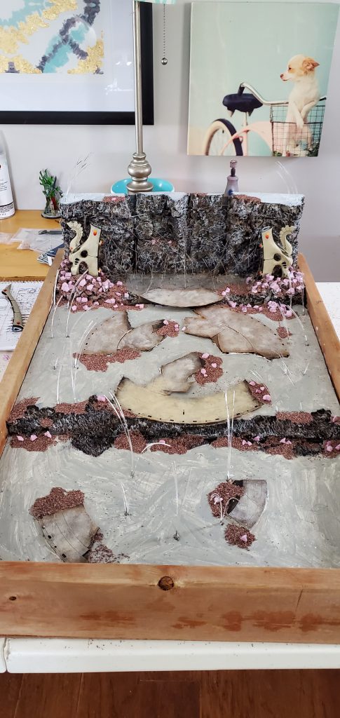Setting the fibers into the waygate base and preparing to add more into the cliff faces