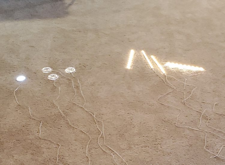 I am using a number of Ikea lights, from two fixtures. I decided to use all of the lights on the display shelf. Wiring is possible through a tiny sliver of an opening under the top panel, if I had wired the bottom shelf there are two openings at the bottom corners.
