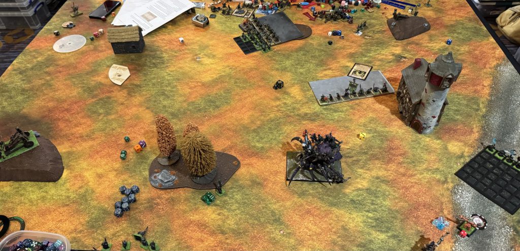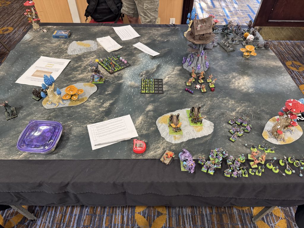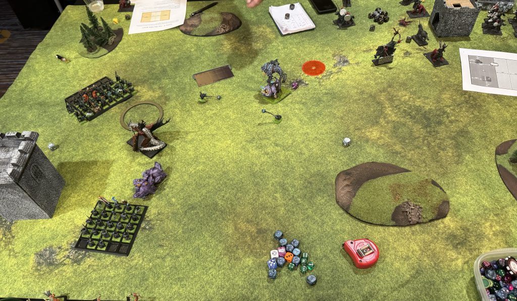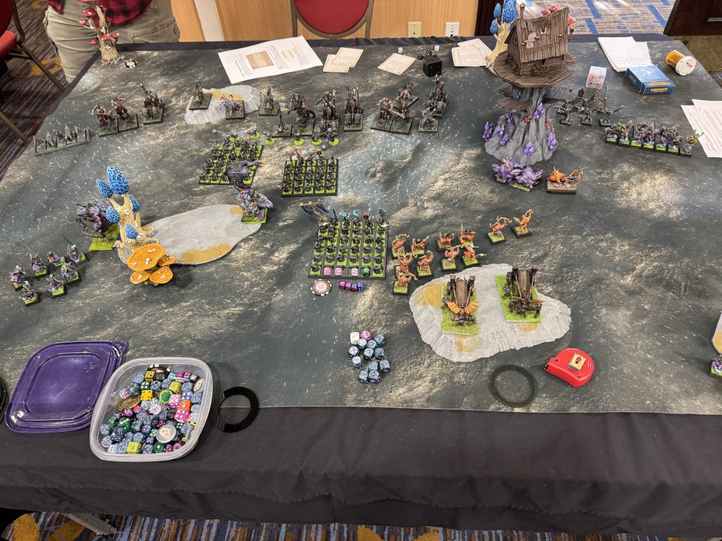 I enjoyed the event and had good opponents. Lots of fun people and lists were present and it seems everyone had a good time. This event was designed to be more about well rounded play than just winning at all costs and aimed to reward multiple types of players having awards for sportsmanship, painting, and overall best event score.As far as “the meta” the reality is monsters are king. The winning list is 4 monsters all of which have high T, W, and regen as well as the ability to heal and fly. It’s honestly miserable to play against and folds just about every army it plays. Dragons will win you games just by existing and you need to have a game plan for them. Even if you do have a plan, dragons are very forgiving for your opponent and one mistake or bad series of dice on your end will probably close a game out. Most players seem to be playing what they own vs what’s optimal (which is healthy for growing communities) this also exacerbates the issues with players that can afford to play sweaty lists. There’s going to need to be some changes to comp formats or the core rules to accommodate these issues.
