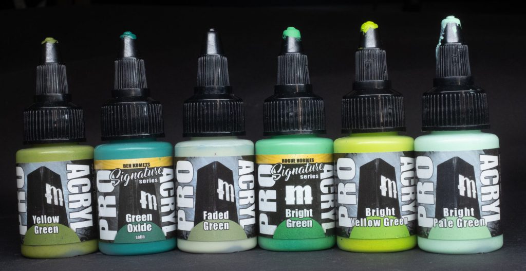Yellow Green - As the name suggests, this yellowy warm green could also be called chartreuse; it’s very punchy, fresh, and rich. Similar to Citadel’s Elysian Green I love this one as an ork-skin midtone.Green Oxide - As the name suggests, Green Oxide is clearly intended to resemble the verdigris patina that covers oxidised bronze. It’s one of the colder greens in the ProAcryl toolbox and makes a pretty great combo when used in sync with Dark Emerald for things like the armour of the Sons of Horus. Used as a thinned down wash with either water or ProAcryl Newsh you can use Green Oxide to get some pretty nice oxidised bronze and copper effects. Again, it’s satin, again I don’t understand why.