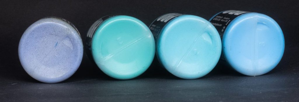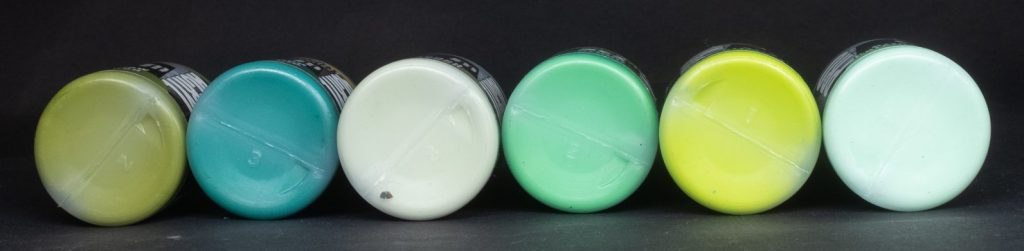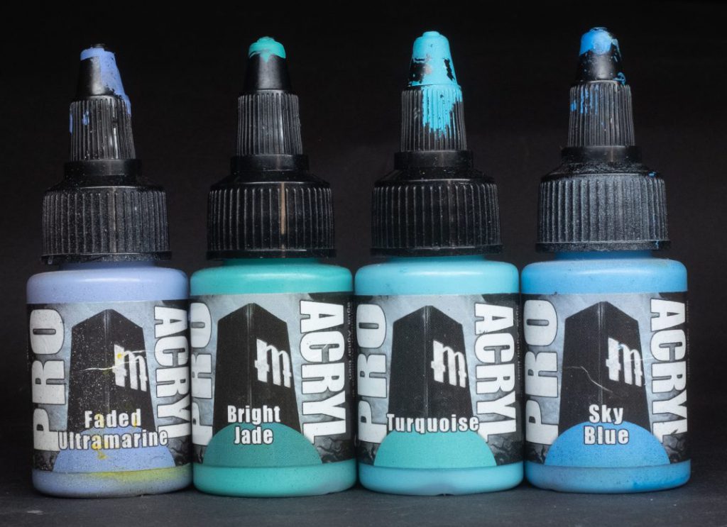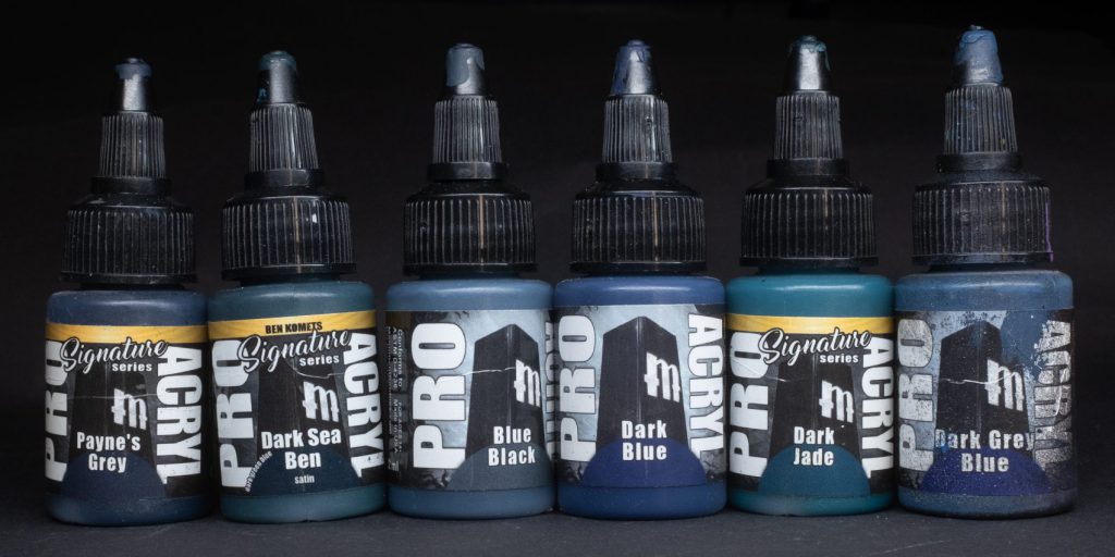 Dark Sea Ben - One of Ben Komets’ signature paints, and currently the only paint in the ProAcryl range that doesn’t really describe all that well what it is in the name: Dark Sea Ben is a dark, somewhat desaturated marine blue-green. I use this one quite to create an easy blue-green shadow upon which I can build just about anything. It’s also satin, for some reason.