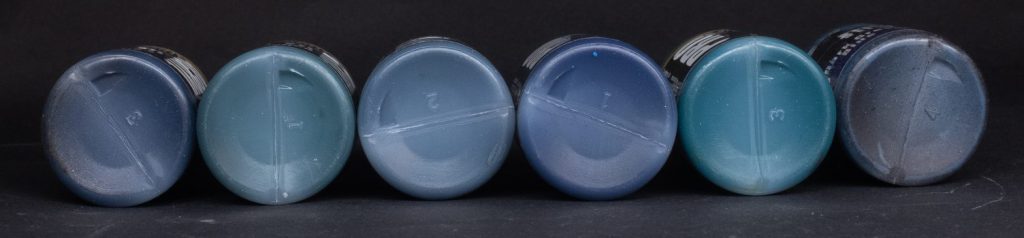 Faded Ultramarine - A faded version of the Ultramarine featured in the Rogue Hobbies set, unlike that paint this one isn’t single pigment, but it still works very nicely as a desaturated bright paint that can easily highlight all kinds of cool blues. It’s like a slightly darker, more saturated version of Russ Grey