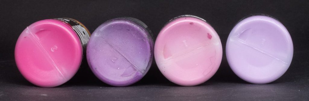 Purple - One of those paints (alongside Blue and Green) with simple incredibly non-specific nomenclature; it doesn’t tell you what kind of purple it is, only that it’s purple. Ah well, this paint is a kind of boosted lavender colour, and as with all the paints in this family it’s very vibrant and saturated.