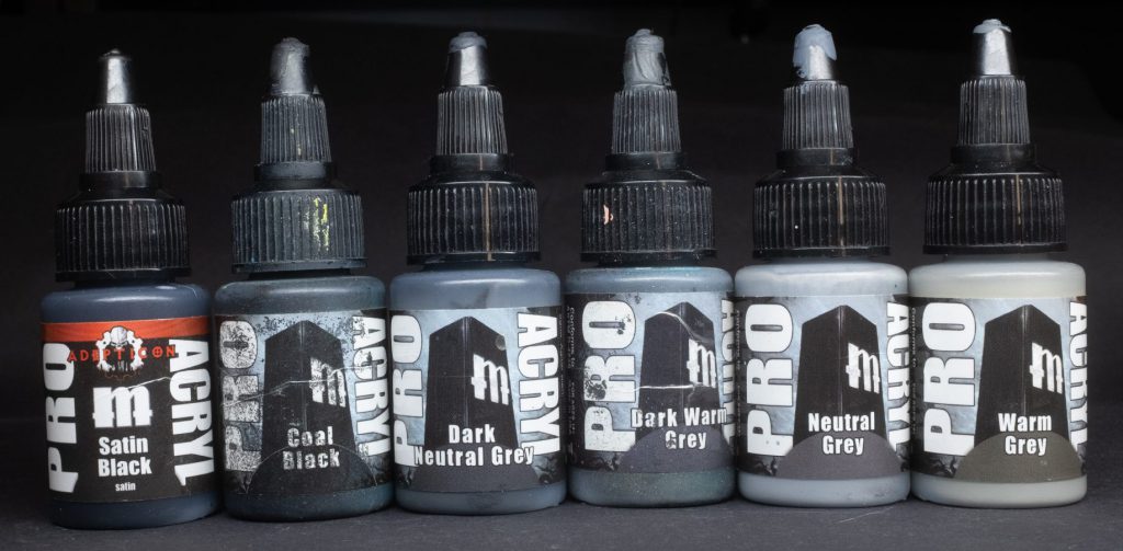 Dark Neutral Grey - The ProAcryl greys consist of two “families” and a couple of outliers, this paint is the darkest member of the neutral grey triad - neither cool nor warm, Dark Neutral Grey is perfect for things like Black Templars, Raven Guard, or Ravenwing space marines, Adepta Sororitas armour, and all manner of death themed fantasy things - Lethis, Nighthaunt, Soulblight Gravelords, what have you.