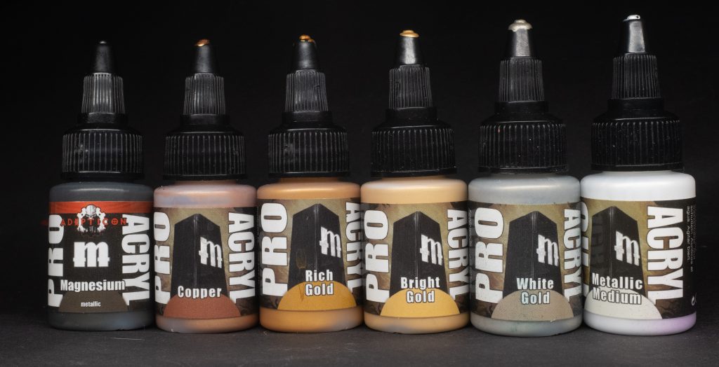 Rich Gold - The darkest of the three ProAcryl golds, Rich Gold is a bit like Citadel Retributor Armour in both its orangey-yellow hue and bold saturation, it certainly packs a real punch. Ideal for the armour of Hammers of Sigmar Stormcast Eternals, the trim of Chaos Space Marines and all manner of jewellery and adornment.