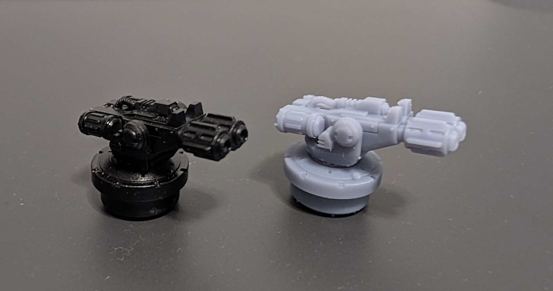 Part quality on the Jupiter 2 (right) is indistinguishable from the Saturn 4 Ultra 16K (left, painted). Gun and pintle by Mostbergminis (Cults3D). Base mount by Kevin Genson.