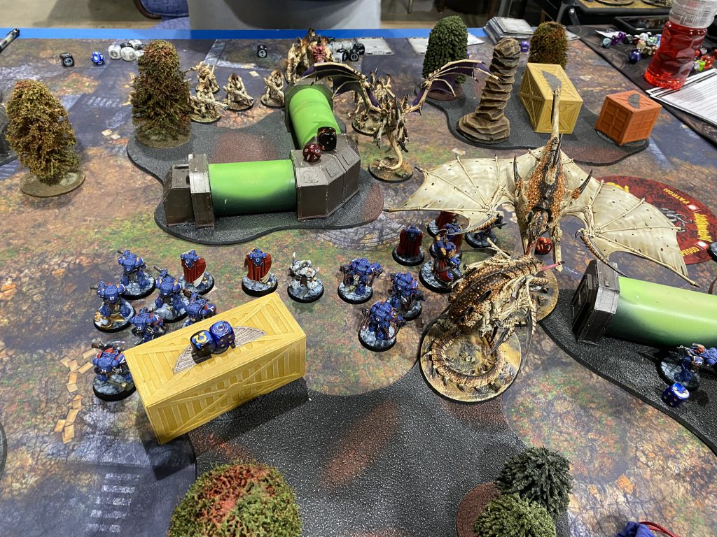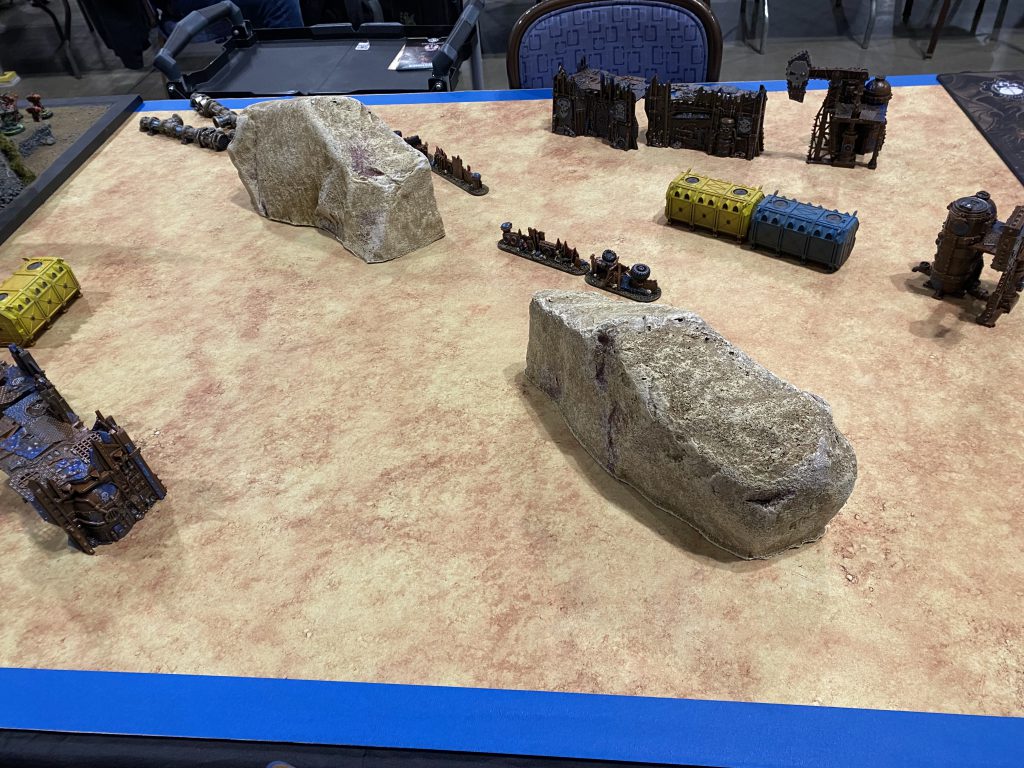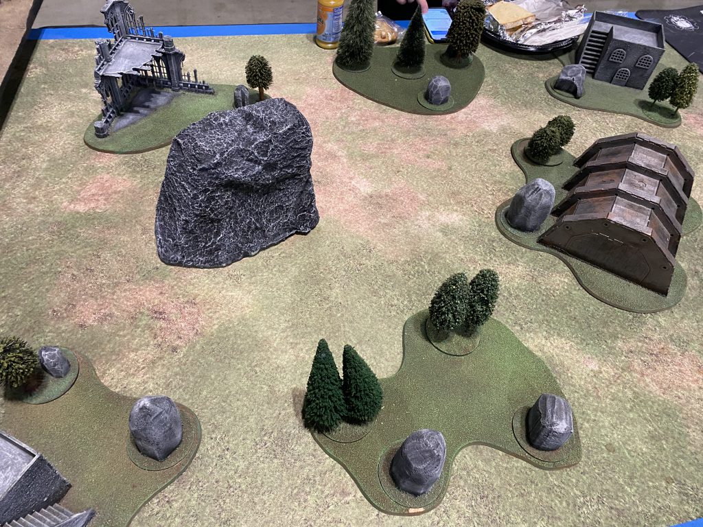 However, in defense of the organizers I felt overall the tables had been vastly improved since 2019. There was a large amount of citadel ruins present that had not been present three years ago. Obviously this does not excuse the lesser tables, but it does show that staff had recognized the need for changes, and had attempted to remedy it. It also would’ve helped if the staff had made it clear that players could move to vacant tables if they found the terrain setup more to their liking. There are always drops prior and during such events, and I saw more than a few empty tables that had superior terrain arrangement.