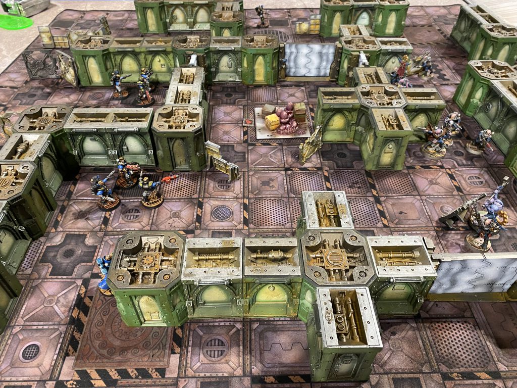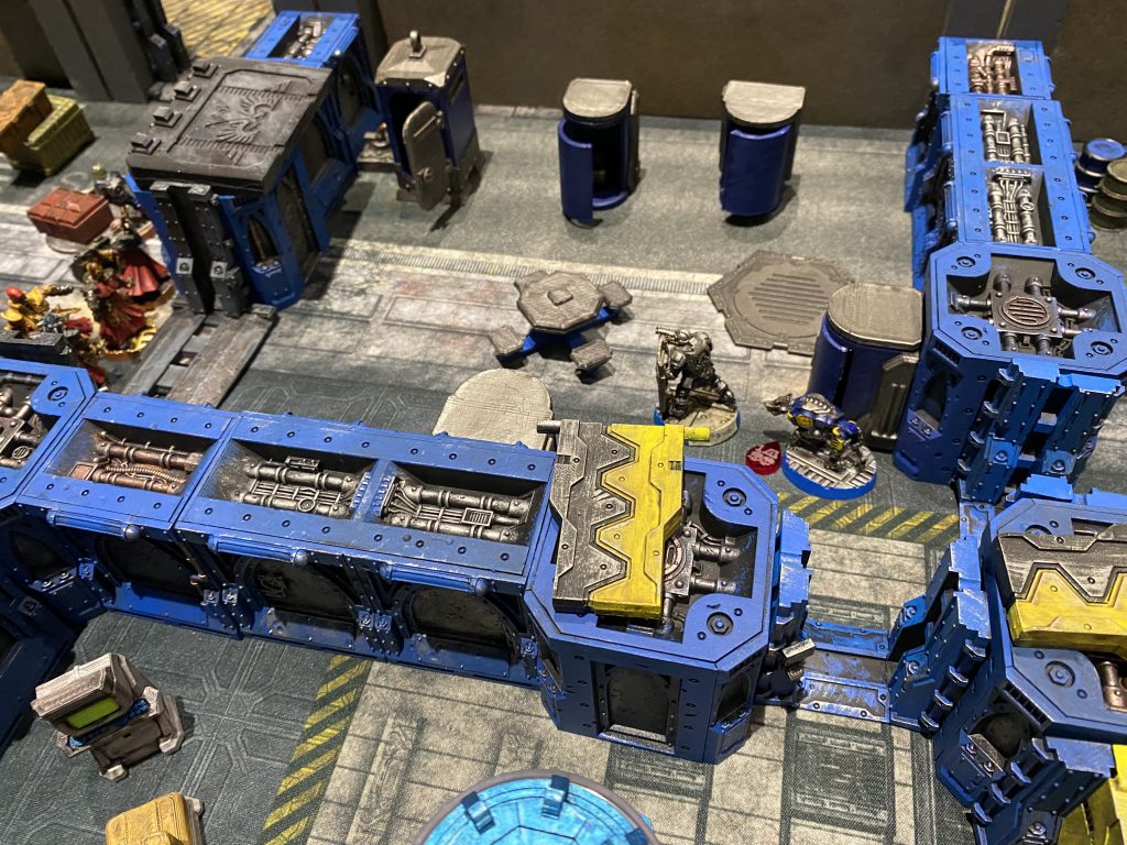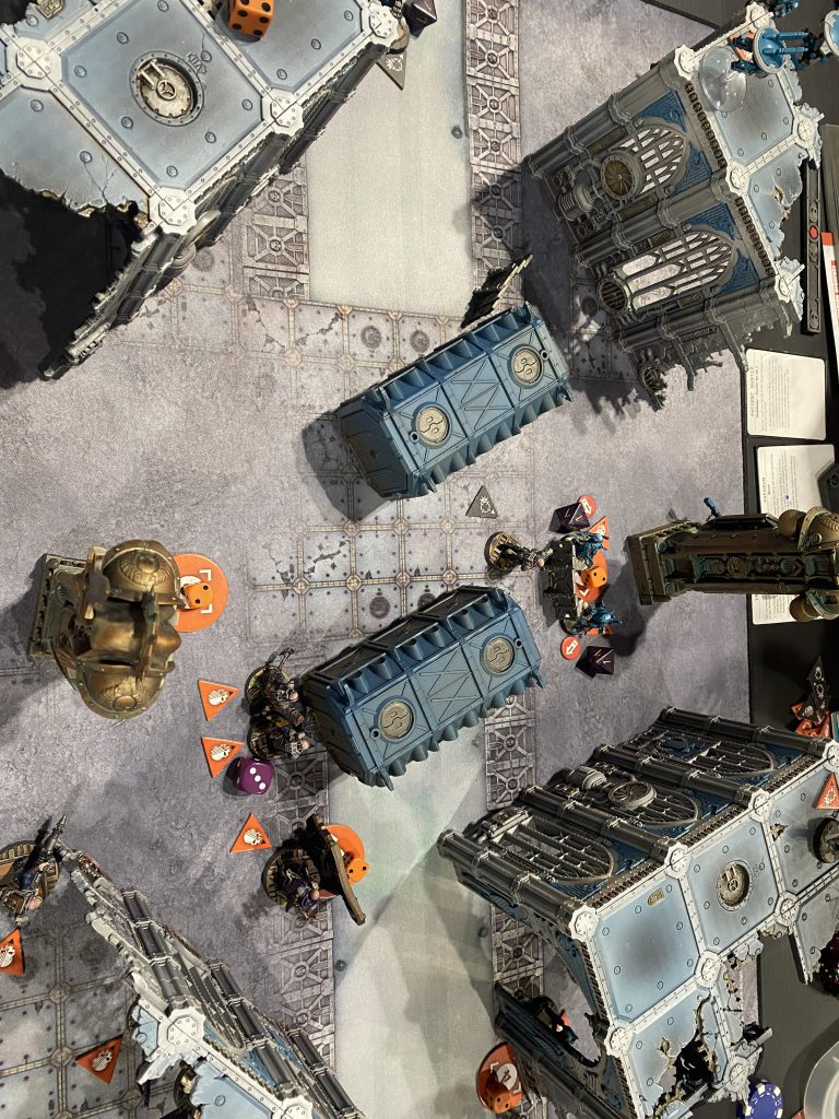 With this in mind I managed to sign up for Assault on Precinct 42, a four person Necromunda Narrative Event. Based on the title I had a pretty good idea what this would turn out to be, and I was not disappointed. A friendly man named Joe ran Pete (the only other person who showed up) and myself through several hours of a really fun raid on an Enforcer station, where the goal of the invading Cawdor was to liberate their boss’s girlfriend from the isocubes.