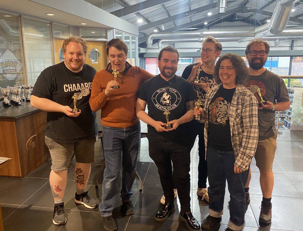 Team Rollmodels, victoriously clutching their wooden spoon awards and experiencing varying amounts of post-event fatigue. Image credit: Chris TomlinCronch: I’d echo Chimp here - I feel like the last place wooden spoon award has galvanised the team a little, so we’re going to have some open conversations about how we want to approach the event and our lists this time round.