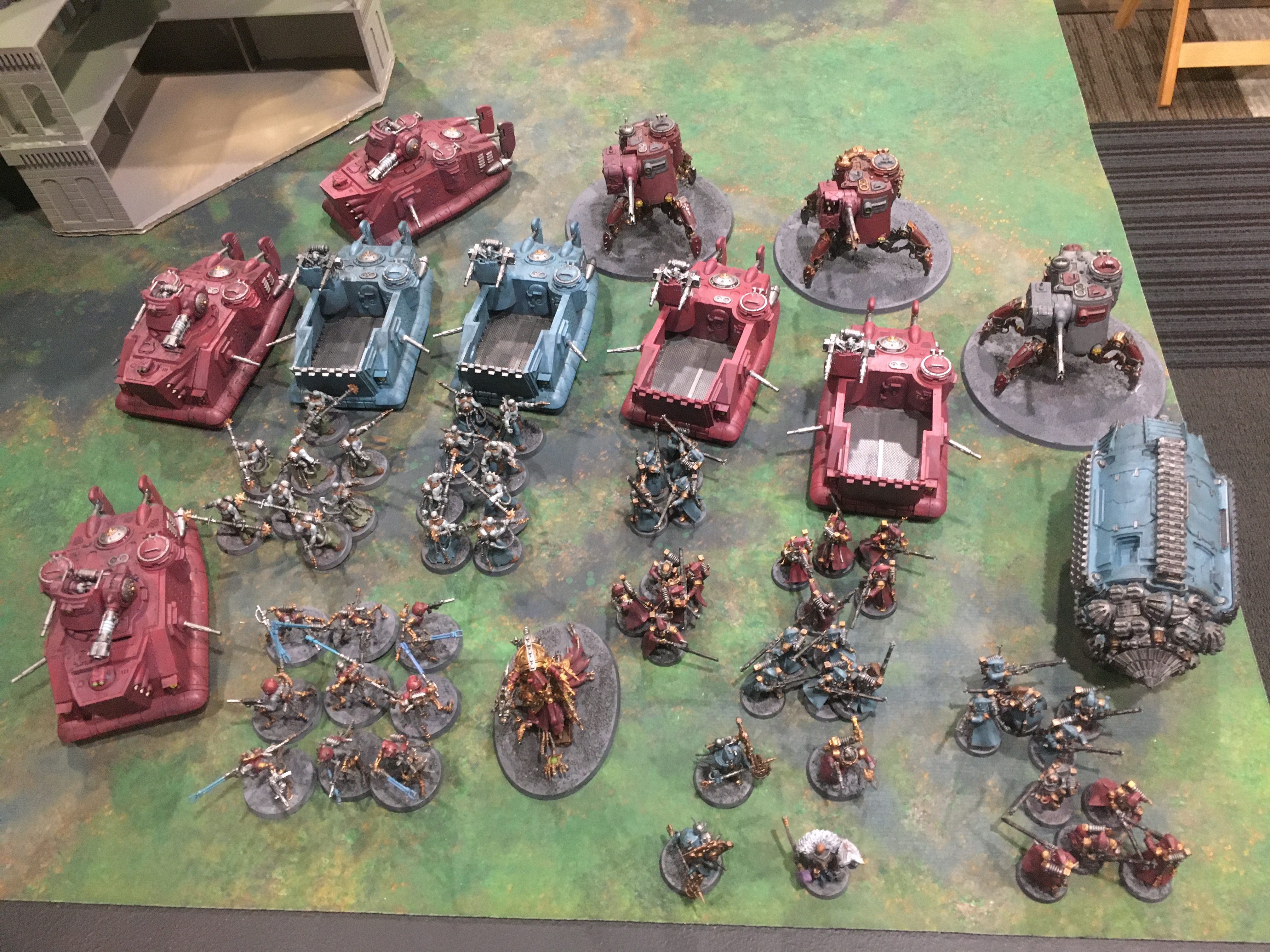 I would name mine GuillotineIf this looks familiar it is. 5 transports and 6 tanks has been the core of my army since way back at Slaughterhouse. I've had some ups and downs over the year with the list but I feel the GSC/Ork hordes are currently oppressed and I think I have play with Marines with the changes. Having an ignore overwatch spell/melee threat/double tap mortal wounds caster is real nice and makes Coteaz an easy replacement for the now 95 point Assassin Sideboard. And with all the points drop, cutting a couple priests, and downgrading the good-but-somewhat dubious-value-because-of-range-bands-Daedalosus opens up enough room for 9 Infiltrators giving me a Wrath of Mars delivery mechanism which may have bailed me out of the Iron Hands AND Chaos Knight matches I had at Renegade. Anyway it's cold out, let's get to the games.