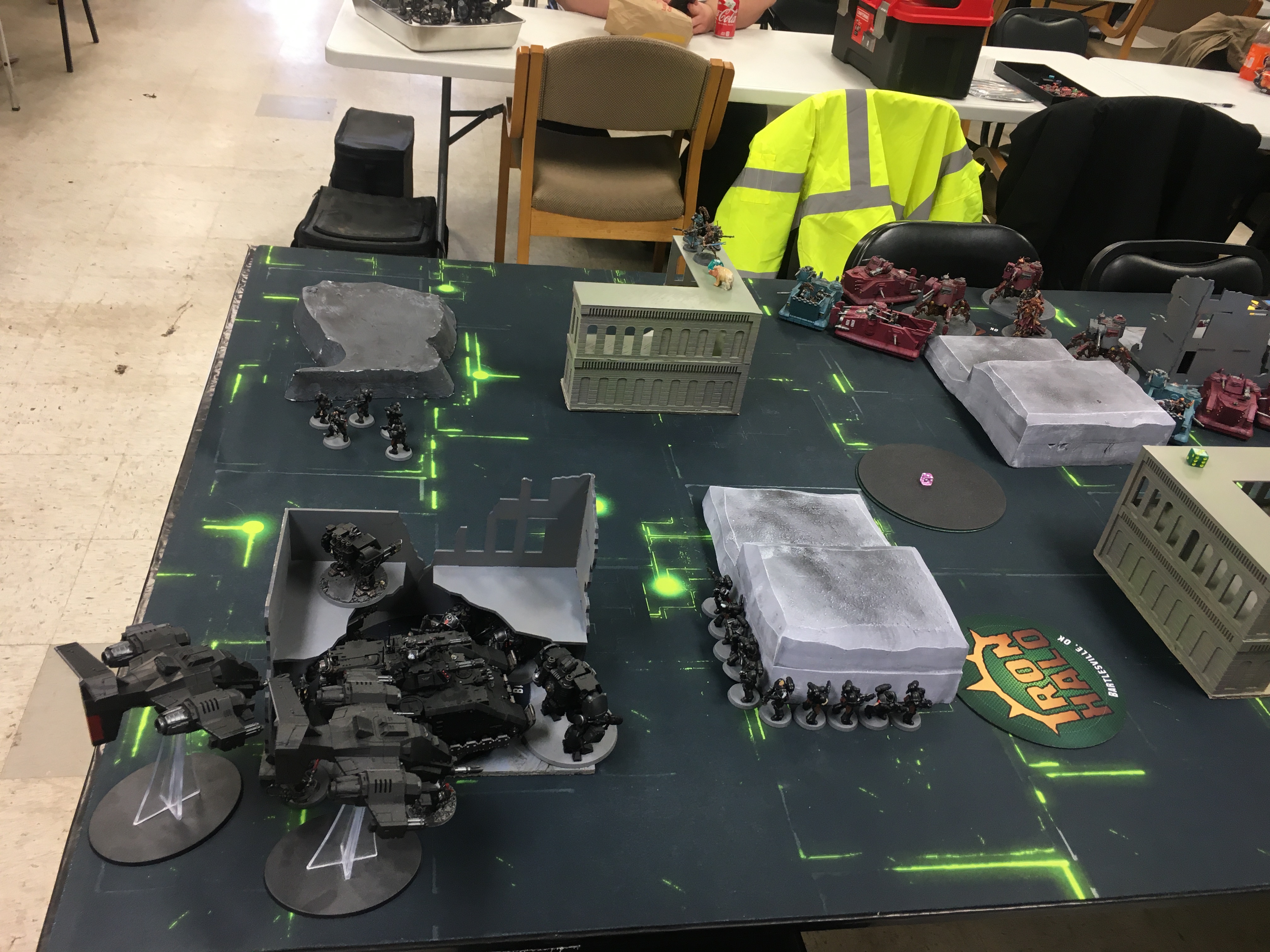 I didn't take a picture but the board was pretty typical Nova style board but with smaller GW ruin Ls.