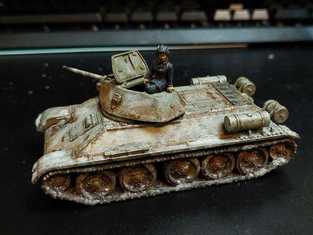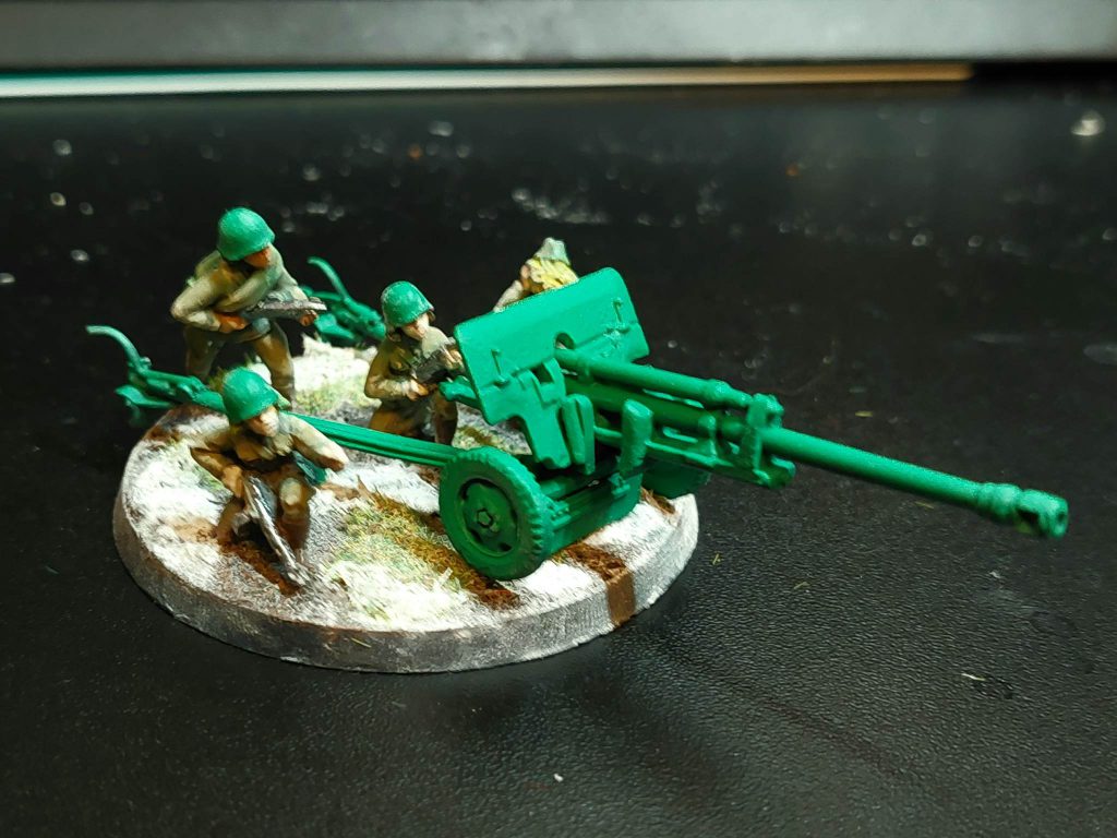 Though they were manned by larger crews, the brigade had access to heavy guns. Credit: HardyRoachThe vehicles got an airbrush layer of olive green, followed by judicious weathering and coats of Green Stuff World's White Dust liquid pigment, to reflect a hasty white-wash. Tank crew uniforms tended towards dark grey or green, but again, any colour in the green-brown spectrum works as well.