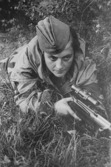 Pavlichenko aiming a Home Guard rifle in London, 1942However skilled Pavlichenko was, she was only one woman. And yet she partially inspired the women’s “sniper movement”, beginning with the training of snipers on the front, and ultimately formalised with the establishment of a central training school in the spring of 1942, which accepted both men and women. In May 1943 The Central Women’s School for Sniper Training was established, which went on to contribute the bulk of the 1885 women snipers deployed on various fronts, and the school commander boasted that in a mere 16 months “the school had accounted for 18-20,000 dead Fritzes”.