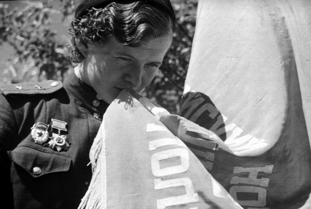 Night Witches Commander Yevdokiya Bershanskaya receives the Guards bannerIn June 1943, the Night Witches were bestowed the title of “Guards” regiment, and granted a Guards’ banner, accepted with a reverential kiss by Commander Yevdokiya Bershanskaya. Despite their numerous accolades, most men in the air-force saw themselves as the real fighters, and dismissed the night bombers as “little girls”, and referred to them as the “death battalion”, a reference to the women’s battalions of 1917 that failed to prevent the seizure of the Winter Palace by the Bolsheviks. It wasn’t until the resurgence of Soviet historiography in the late 20th century that the Night Witches began to be remembered for their exceptional service.
