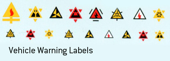 These triangles are the kind of warning labels you'd expect on the dangerous parts of a flying alien tank or plane.