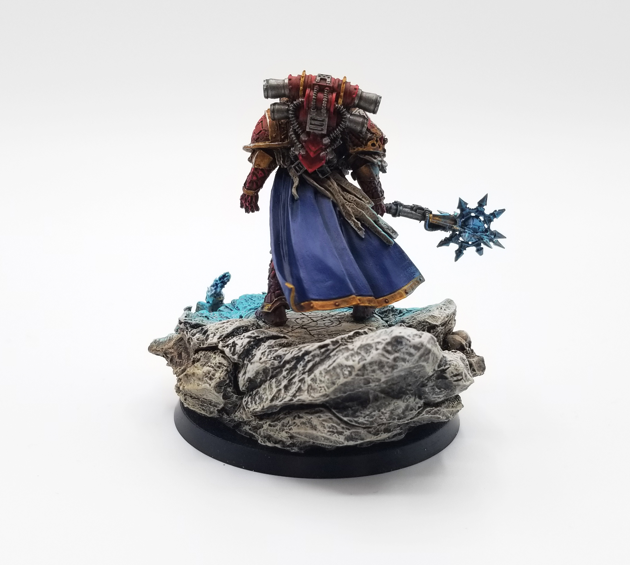 Credit: Robert "TheChirurgeon" JonesThe most recent model I've painted was Lorgar. I've had this guy sitting around in my collection for a while - SD47 bought this guy for me a few years ago and while I immediately set about scrubbing him down and getting him ready to paint, when I actually went to paint him after spending all that effort washing and drying and scrubbing the model, there was still release agent on it - paint was sloughing off in a bunch of spots. I was so disheartened by the occurrence that I put the model back in his box and didn't touch him for like two years. Recently I dug him out of my bitz uh, closet, while I was looking for other models and decided to finish him (I ended up painting the spots that still had release agent in varnish before re-coating them and that worked). Otherwise, Lorgar was a right pain in the ass to assemble, with little in the way of instructions, but I'm happy with how he turned out. At some point I'll do Conrad Kurze next.