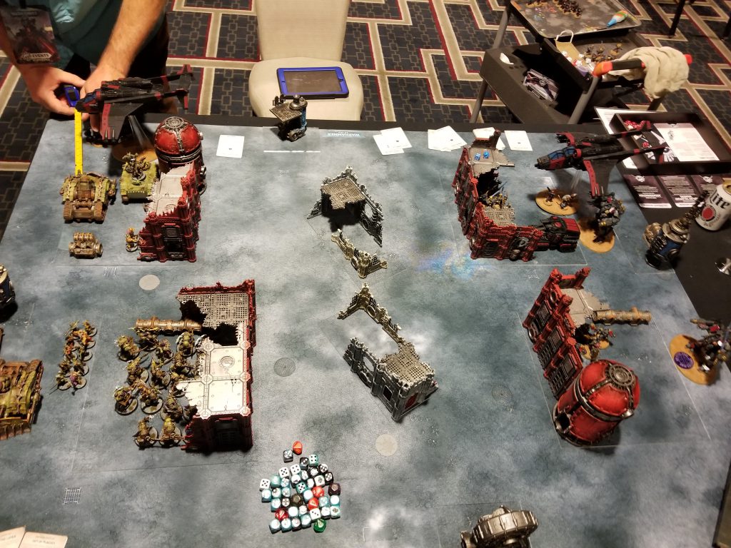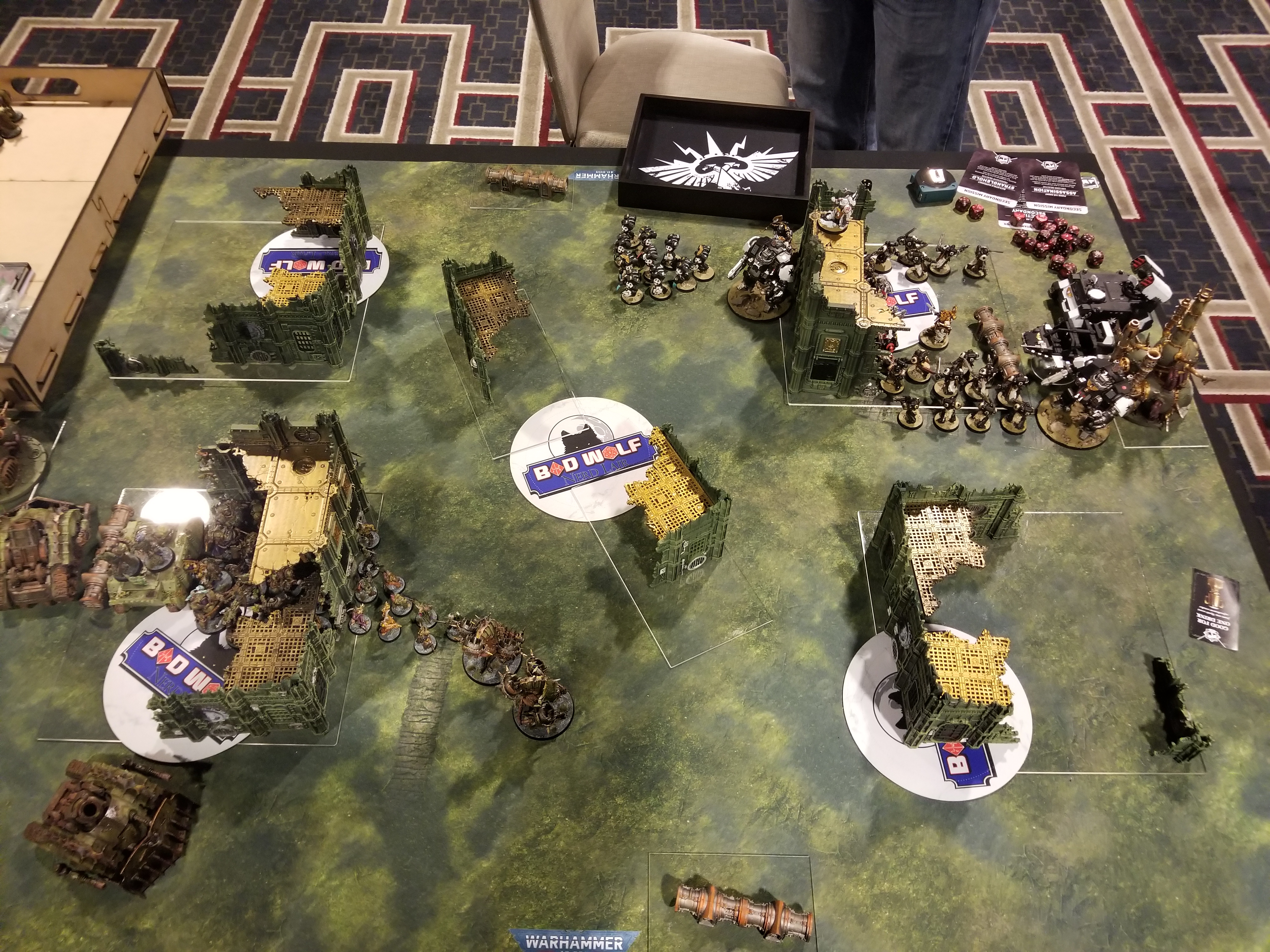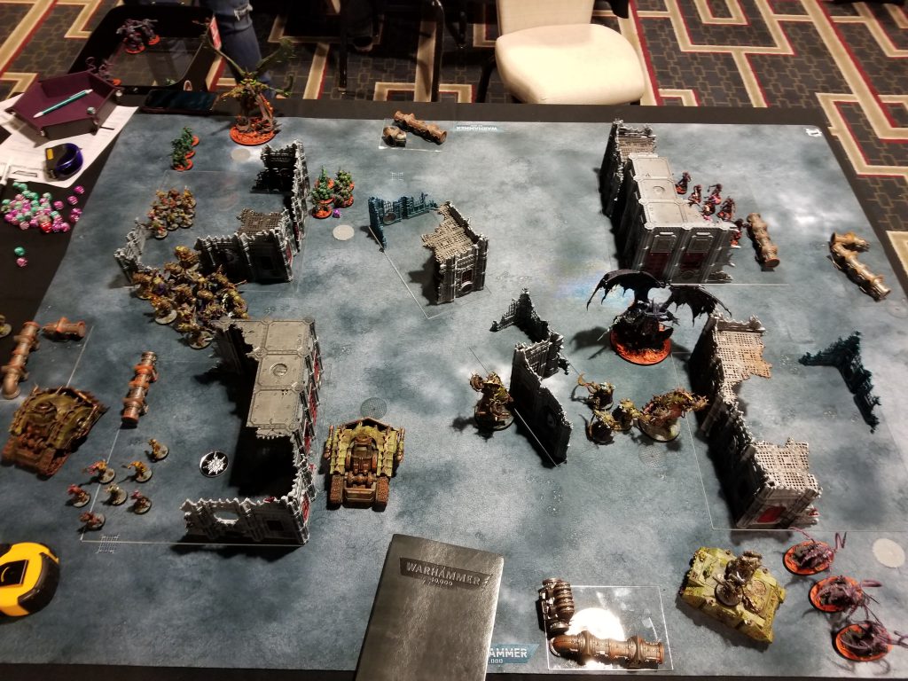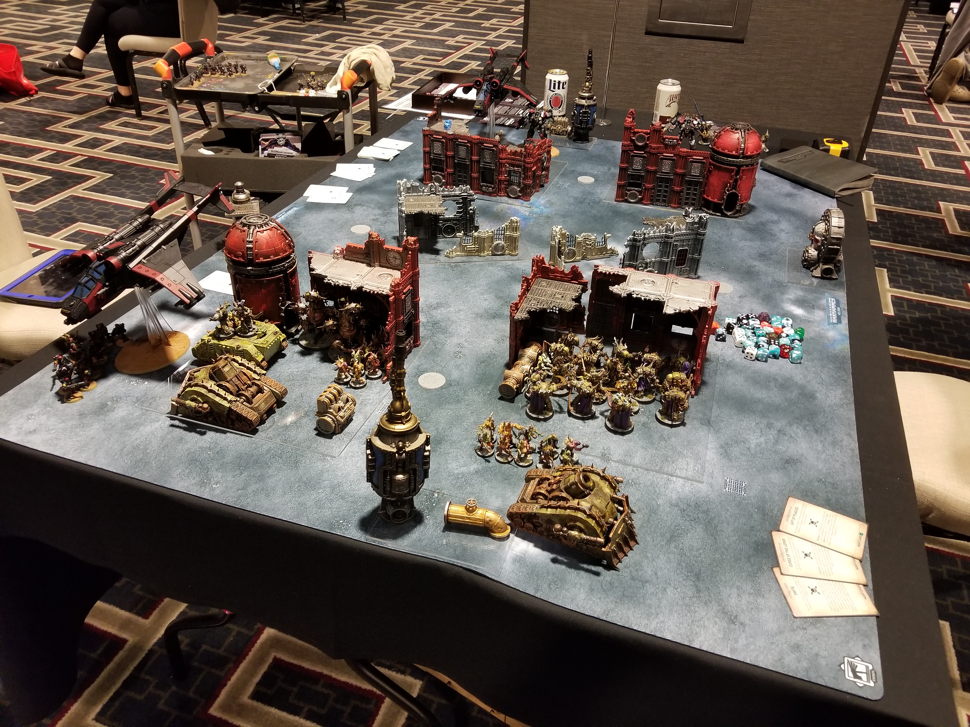 Darin had a lovely list with a beautiful MortarionI needed a reset after that first game and I'm happy that Darin was my next opponent. Darin was my favorite opponent of the weekend - just an incredibly chill dude with a great army and a wonderful attitude. The game was fun start-to-finish and I was a little sad that I had to be the one to gingerly pick him up and place him in the dumpster. Darin wins my "best opponent of the event" award, edging out Adam and Thomas. We end up having a few beers later in the game when one of his friends stops by to spectate the back half.