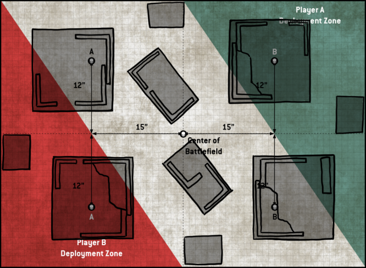 Battle Lines is still tough for me when it comes to secondaries. Lassider's list gives me a 15-point Assassination option and I'll gladly take that since I need to kill the Dreadknight anyways, and Grind Them Down is also a good take here since I'll be chewing through weaker guard units. The only tough one here is my third secondary - Spread and Banners aren't great here, and I don't love having to hold both middle objectives for Stranglehold, so I opt for Vital Ground, which will give me partial credit for holding one of them. My plan is to try and score 10 points off it, which is a trio of single turns and one double. Lassider takes Behind Enemy Lines, signaling his turn 1 intentions - then Assassination and Deploy Teleport Homers. Engage was probably a better pick here but I see what he's going for.