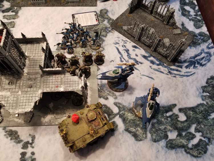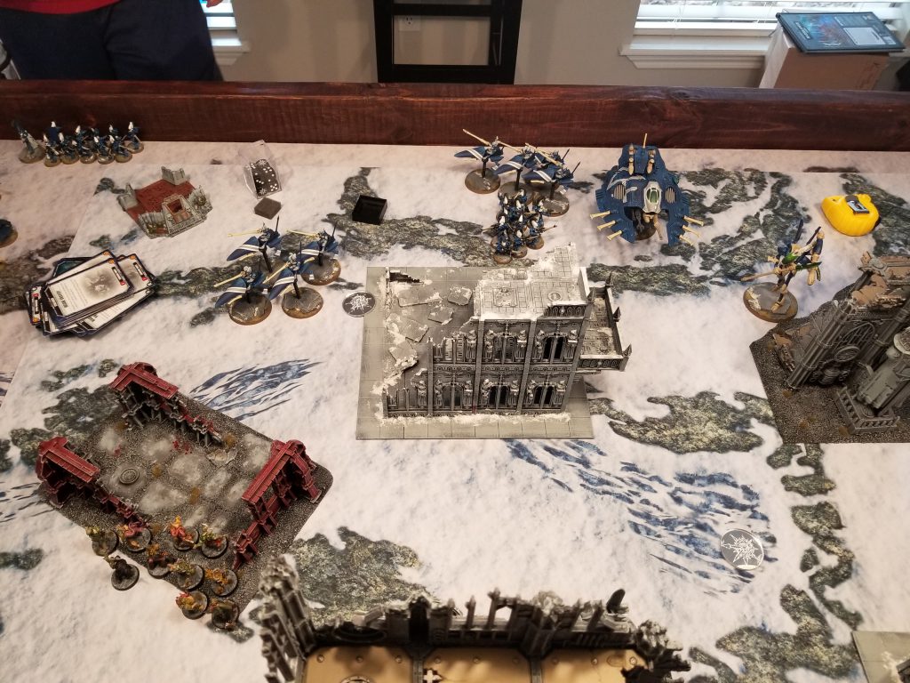 Greg: Man, Asurmen, what a legend. Every once in a while wild stuff happens in a dice game, and that was well worth the price of admission. That said, in retrospect: This list should never take psychic secondaries. It can’t spare the psyker to do it. Splitting one of the squads of Dire Avengers into two 5-man squads would have given me better options for doing actions. The support platforms can do work, but they cannot take a punch. I needed a better plan for getting my Vypers or Shining Spears into combat with Rob’s Plagueburst Crawlers. Don’t charge Poxwalkers unless you’re positive you’re gonna wipe them out. I think I’m going to stick with this list or something similar to it for the time being while I shake off the rust from a pandemic with very little gaming. The codex isn’t great, but it’s simple, and that lets me focus on playing the mission and picking secondaries, which I need the practice at.
