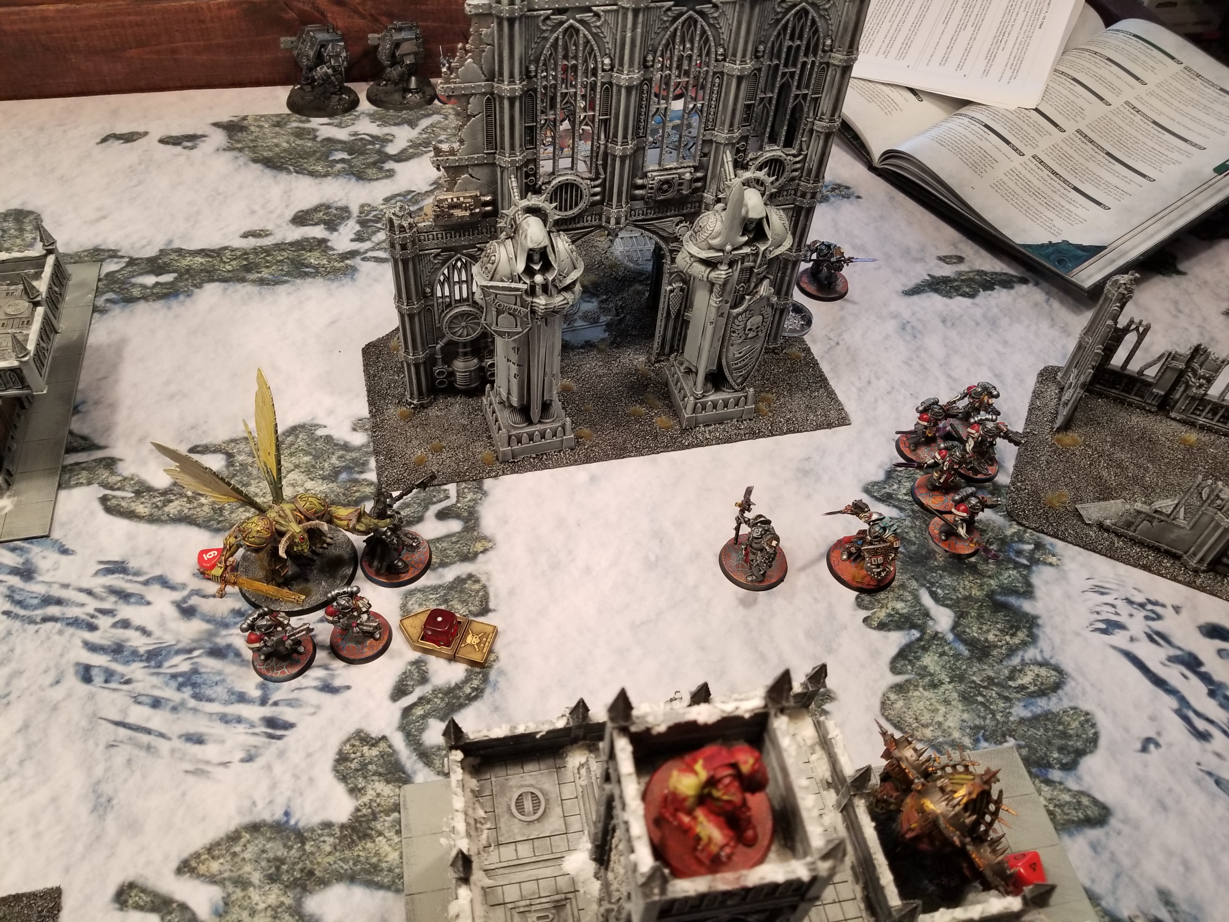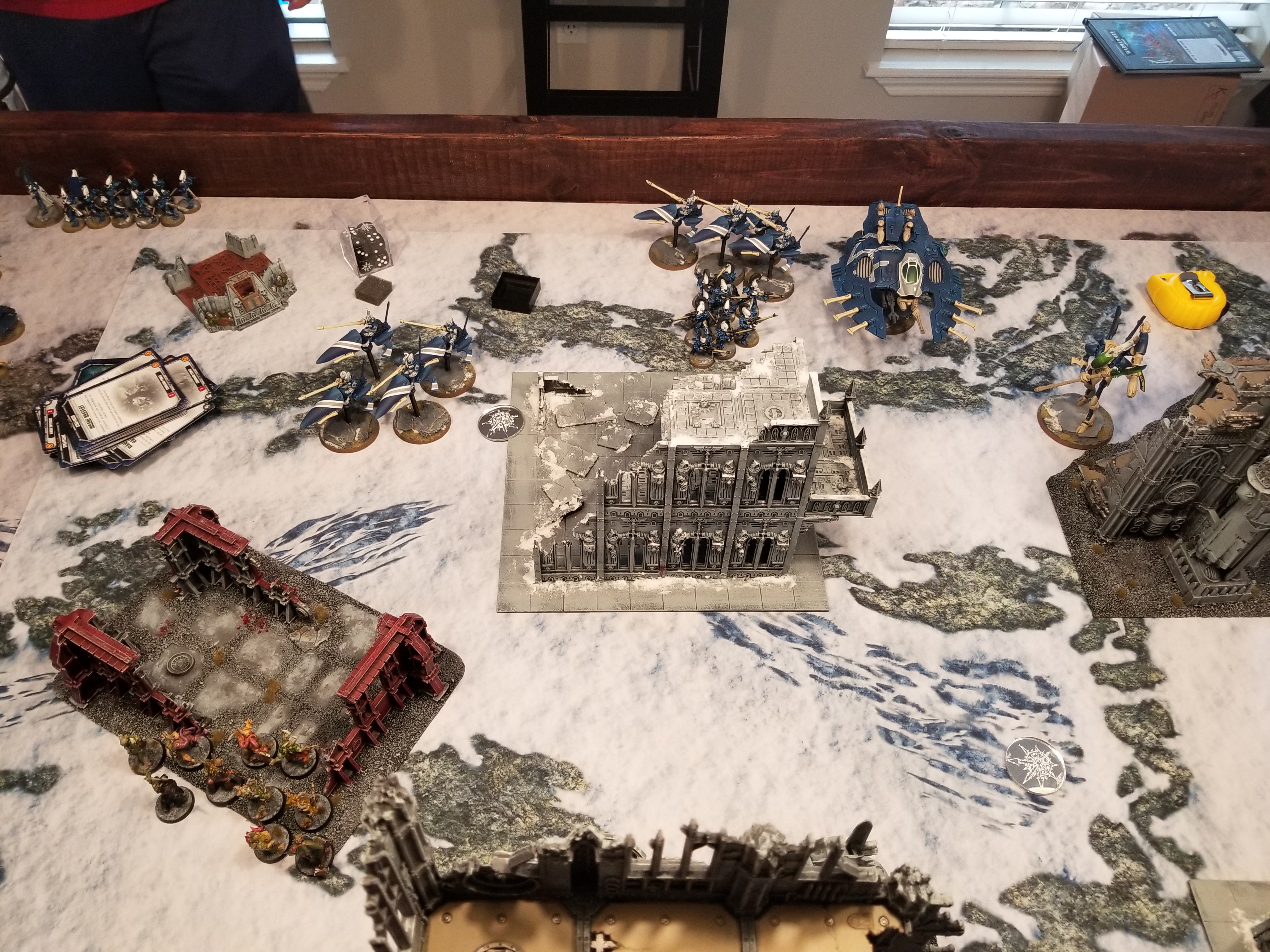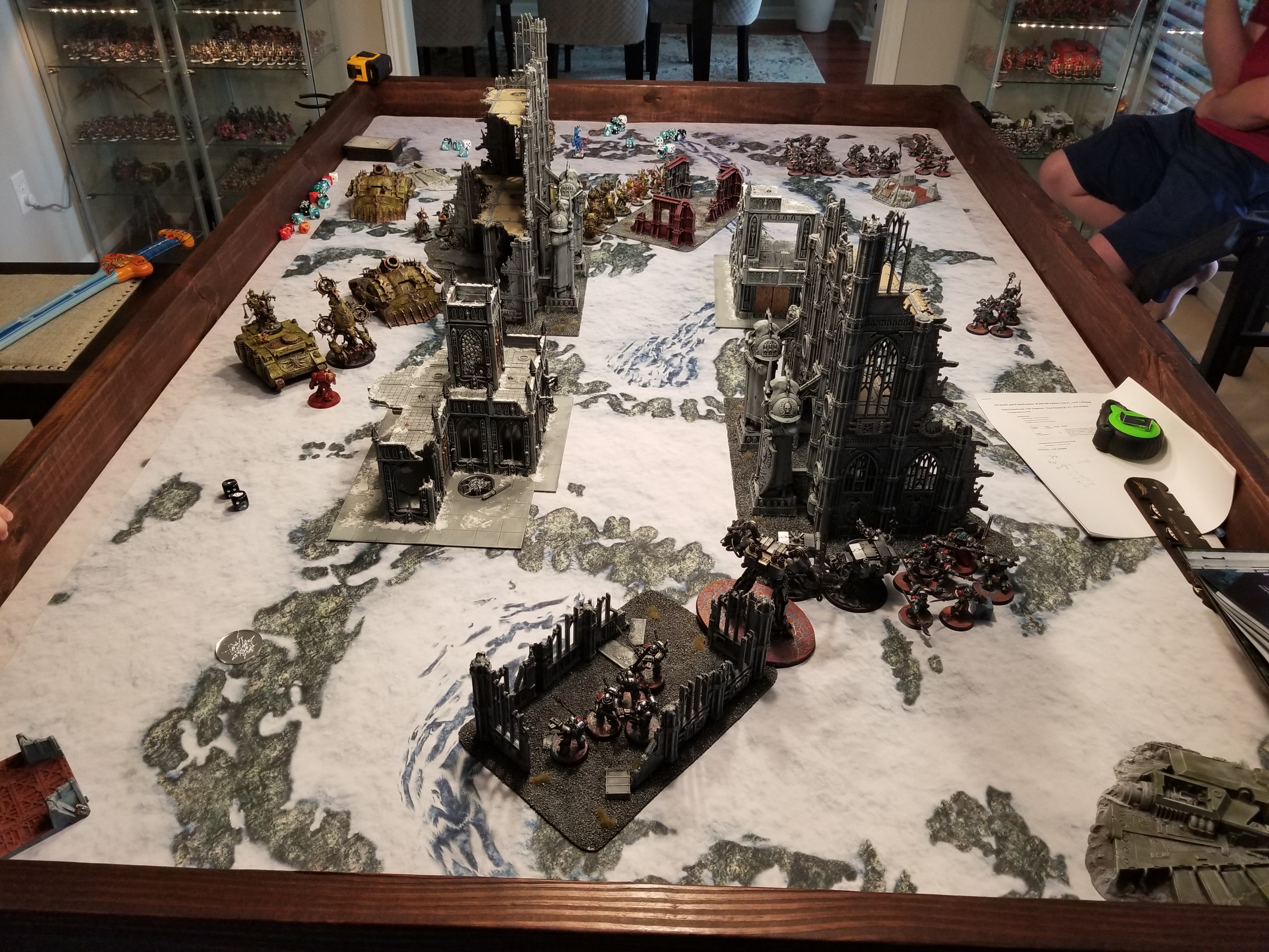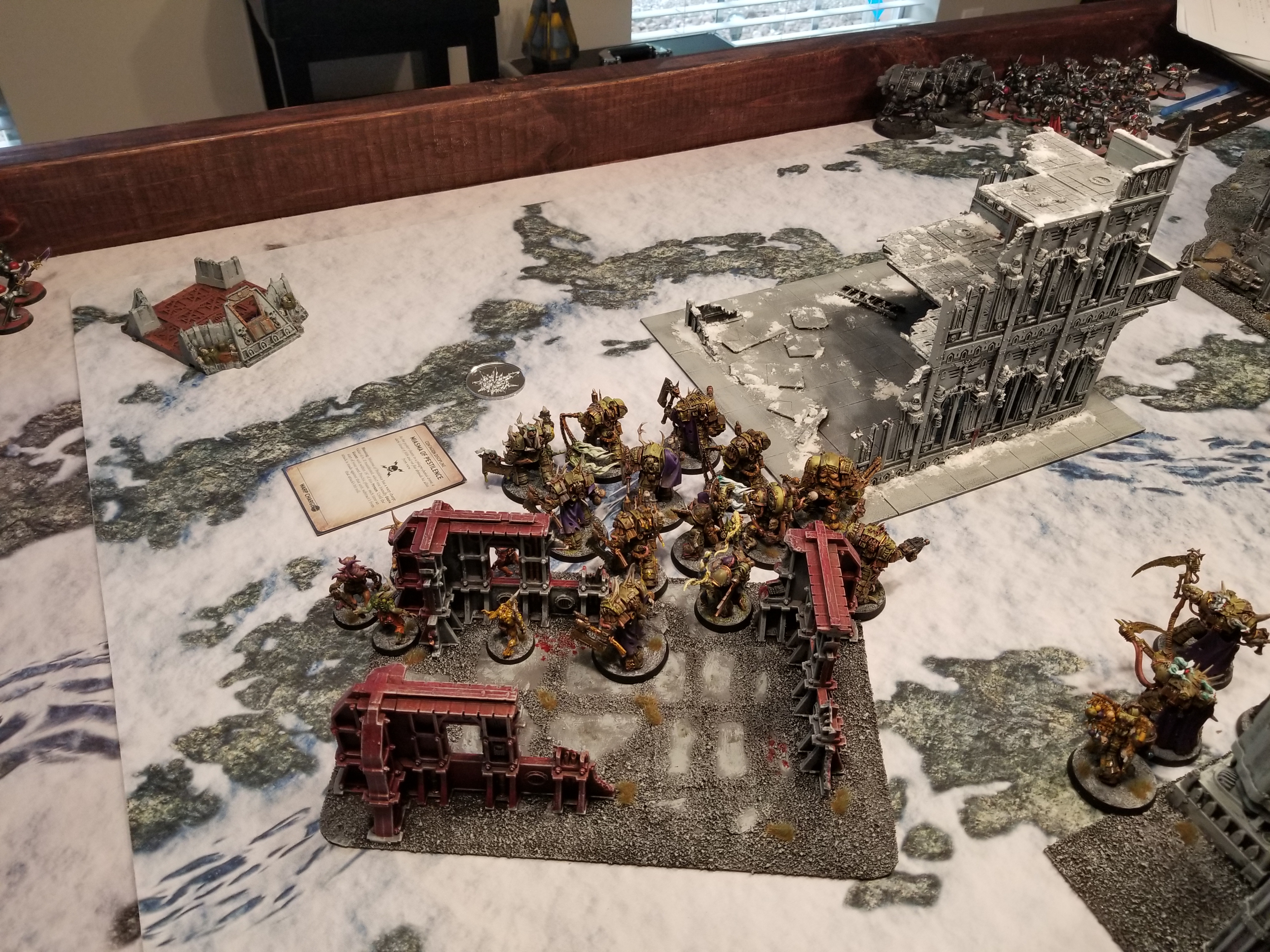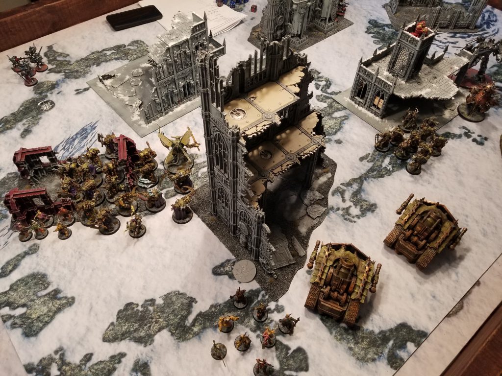 So anyways during the week one of the guys on the local Discord I'm on asks about getting in a tournament practice game. After my last game I made a couple of small tweaks to my list for the GHO and I was eager to try those out, plus I want to play games against more armies and opponents. So on Saturday I prepped the gaming table and two friends came over to play games, one after the other, at 11am and 3pm. That's a lot of game time but the wife was cool with it so I was able to get some extra reps in.