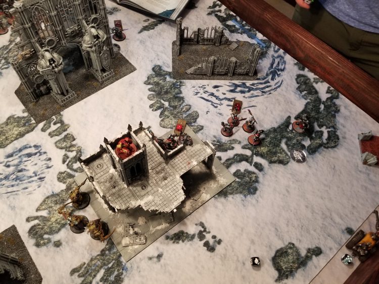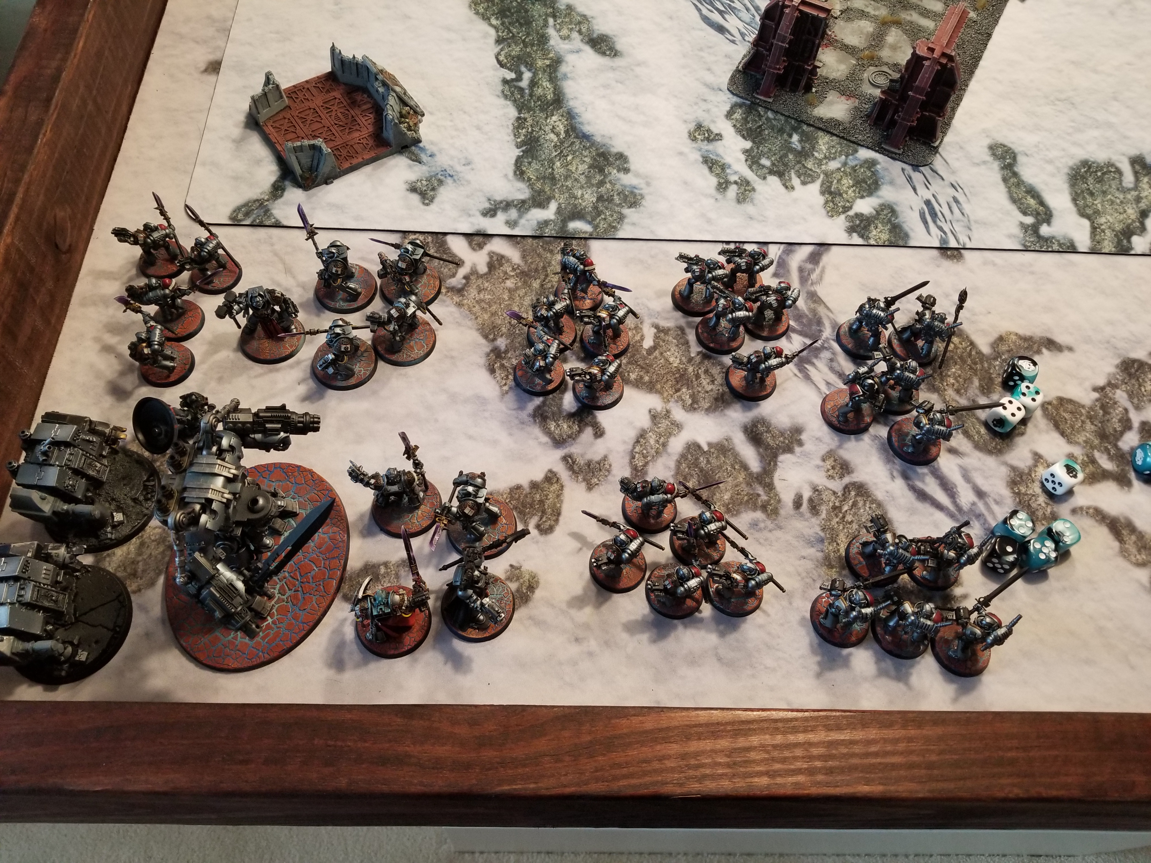 Deployment. Grey Knights are going first. That red terminator was put their by my four year-old and isn't actually part of the game. Be cool about it, it'll be in more photos