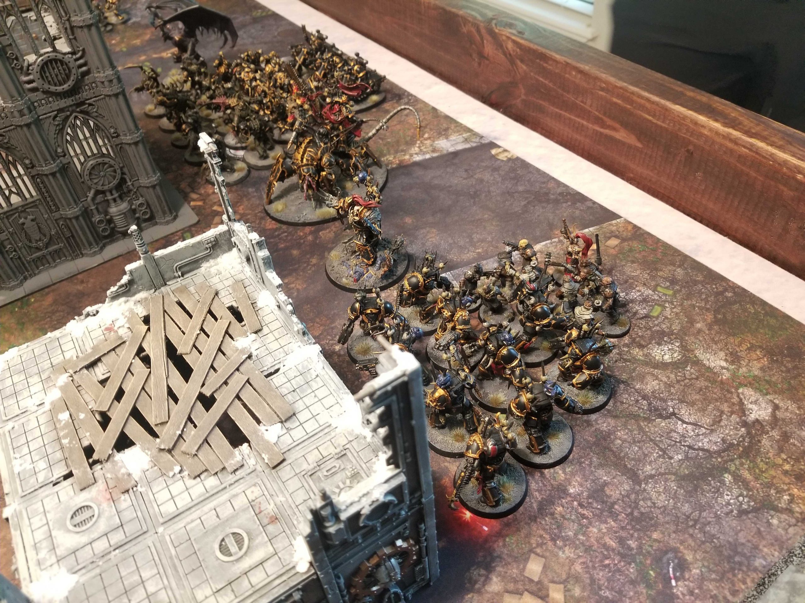 I wasn't thinking about this at all and in retrospect I am extremely glad I played Russell and he reminded me of this - I've spent too much time playing on GW layouts and would have gone into LSO completely ignorant of this until it was used on me in a real game. As it is, Russell will not only use the ruin to make an Overwatch-free charge with Abaddon, he'll use the building to hide Possessed and Terminators all game, making me repeatedly pay for the mistake. This is a good time to learn this lesson!