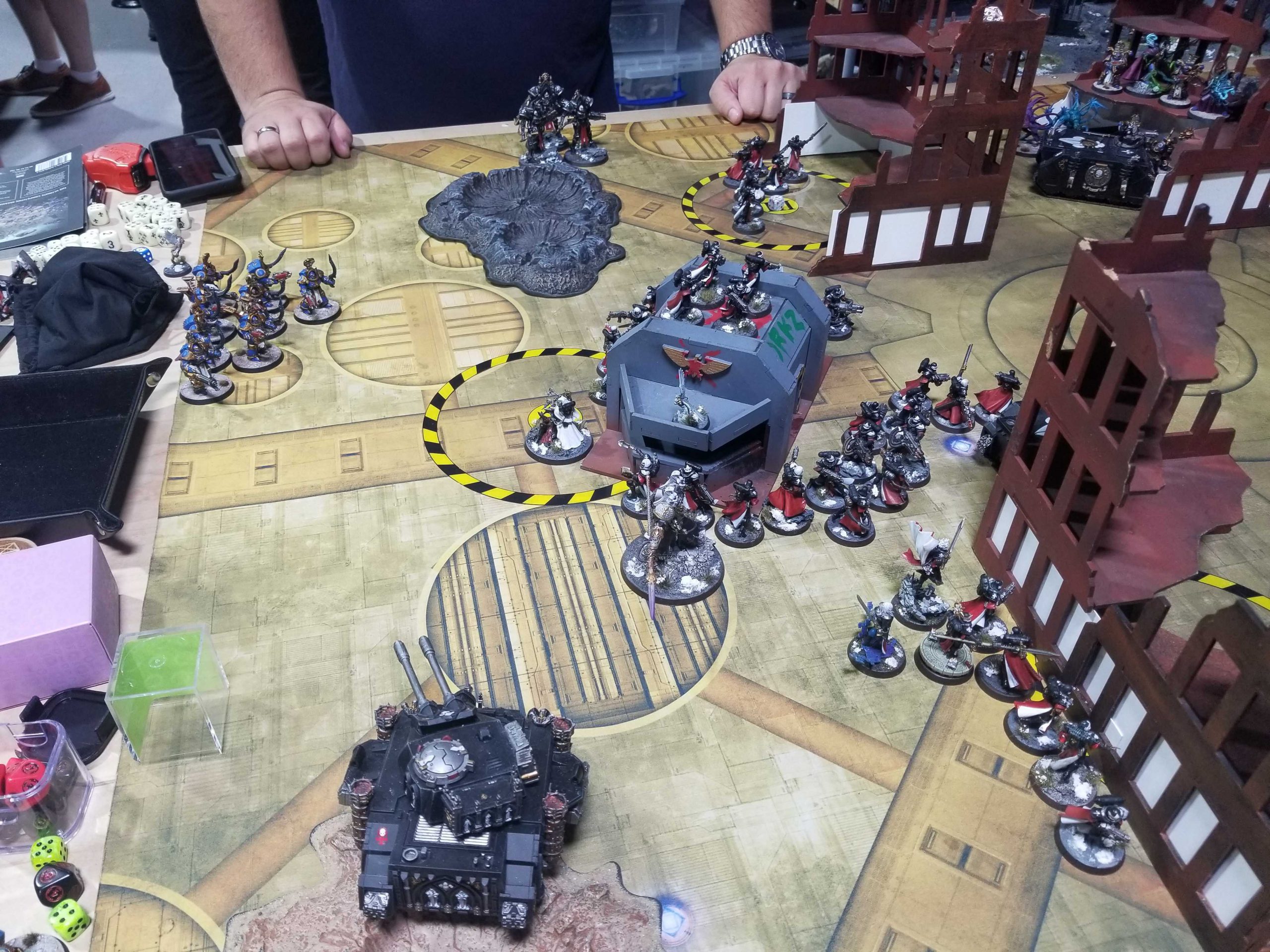 A very tough game - most things that could have gone T's way (such as damage rolls) did, and he played very well to steal objectives from me with his War Dog and obsec knights.Round 2: vs. Matt Michaliszyn's Adepta Sororitas