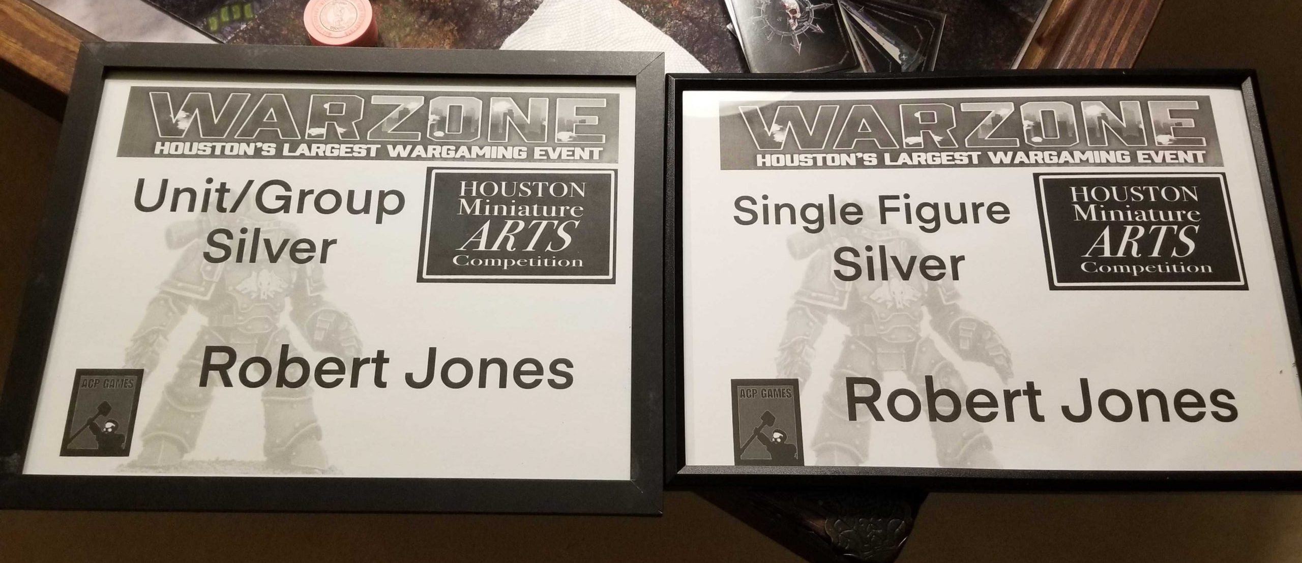 If there's an ironic upside, it's that I did do better than expected in the painting competition, taking home silver for both single mini and unit. I'm very proud of both of these, and will need to find spots on my wall for each: