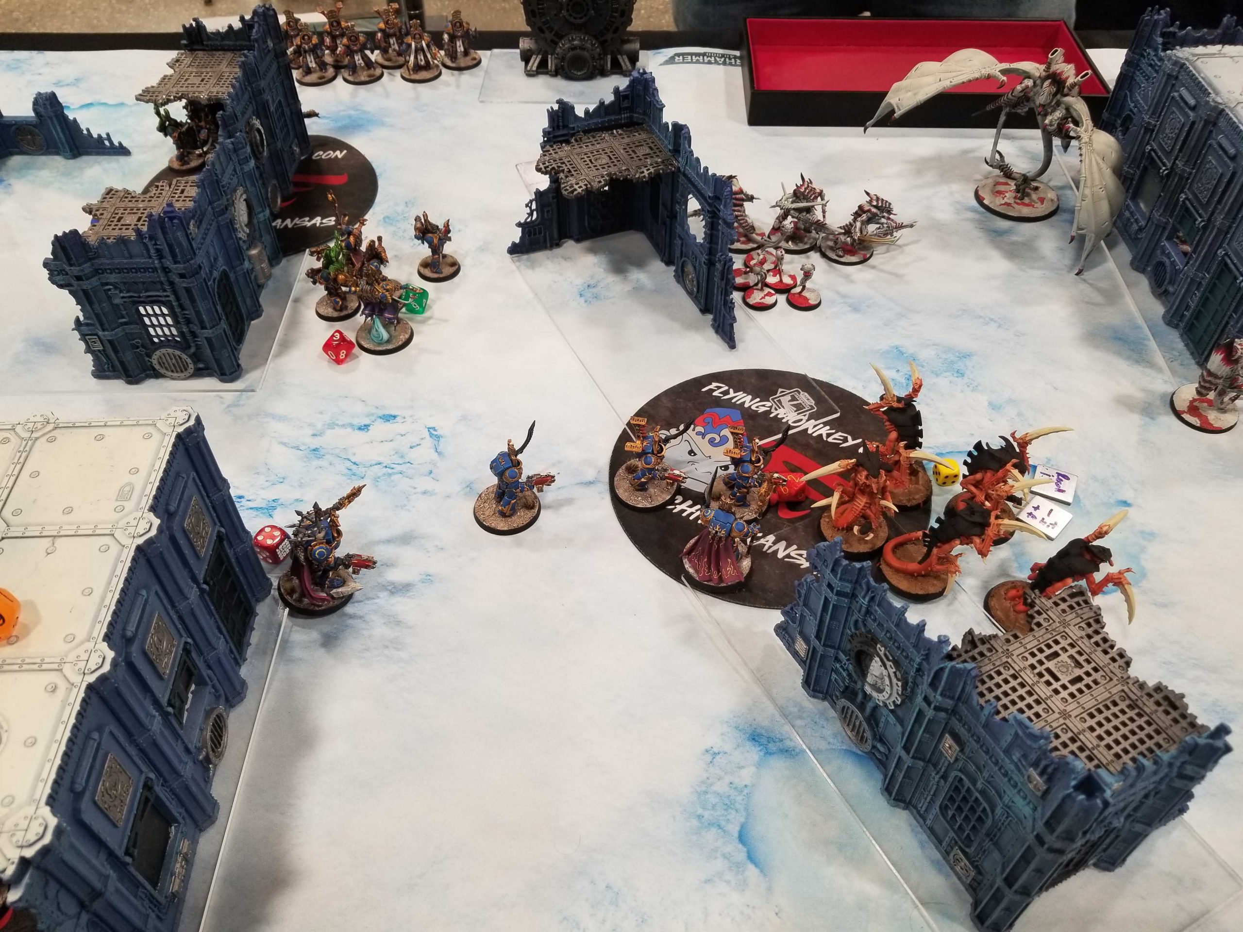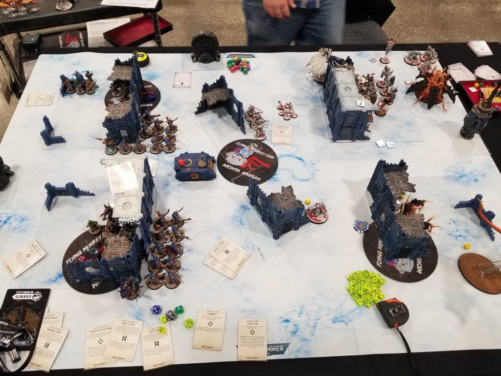 The view from right before everything was fuckedDan Sammons is absolutely a name I recognize from hearing James "Boon" Kelling talk online, so I at least know he's a pretty good player and Boon enjoys playing him. That's a problem because I didn't really want to play someone who is "a good player" or "Tyranids" this morning, as either one of those drastically reduces my chances of making the 4-0 bracket/top 16.