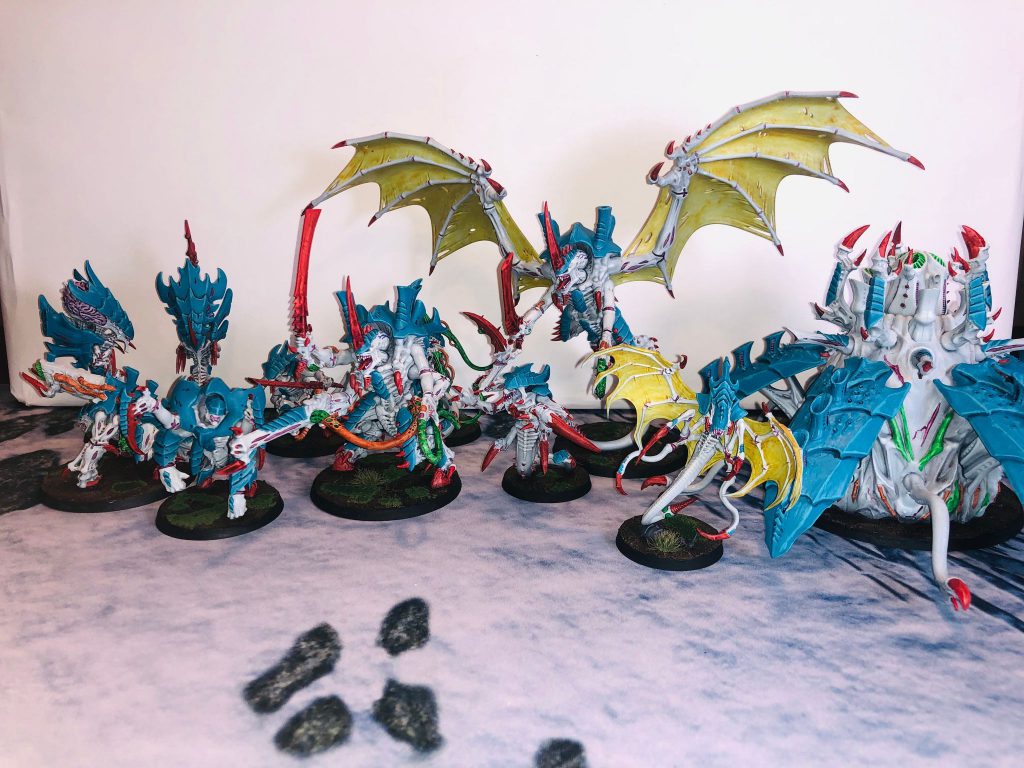 Dan is supposedly "hate-playing" Tyranids, which looks a lot like "just playing Tyranids regularly, only you claim you never do this and are just winning your games in protest or some shit." He's also running Kraken, which is likely the stronger build and more likely to cause me problems since it can throw out AP-5 raveners with a million attacks and put even my dusty bois on 5+ invulnerable saves in melee. That sucks. Also there's still plenty of mortal wounds here with the harpy, sporocyst, and biovores.