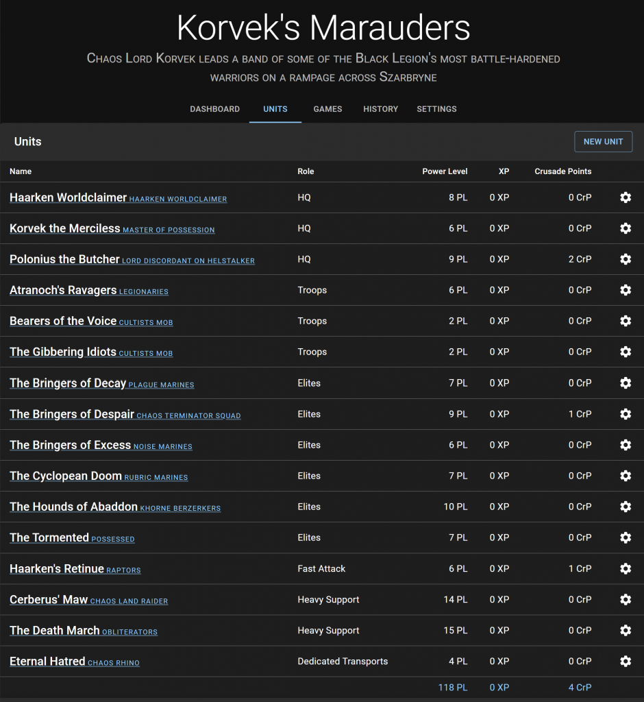 This, to me, is a shame – while I’ll always encourage new players to join events and take the plunge, not many players want to sit through someone’s first game of 40k at a large event, and narrative events are decidedly more fun when you have a dedicated group of players around you who care about the outcome of the narrative and want to leave their mark. Narrative events are at their best when the players are invested in the outcome, trying to win, and having a fun time doing it and care about the mechanics of the event. On top of that, narrative events are usually more complicated than competitive ones – they tend to add extra mechanics and quirks on top of the existing rules, and Crusade adds a whole additional level of complexity to the game that most casual players are just not prepared for (this is where Administratum can be a massive help, and that’s a major reason we built it).