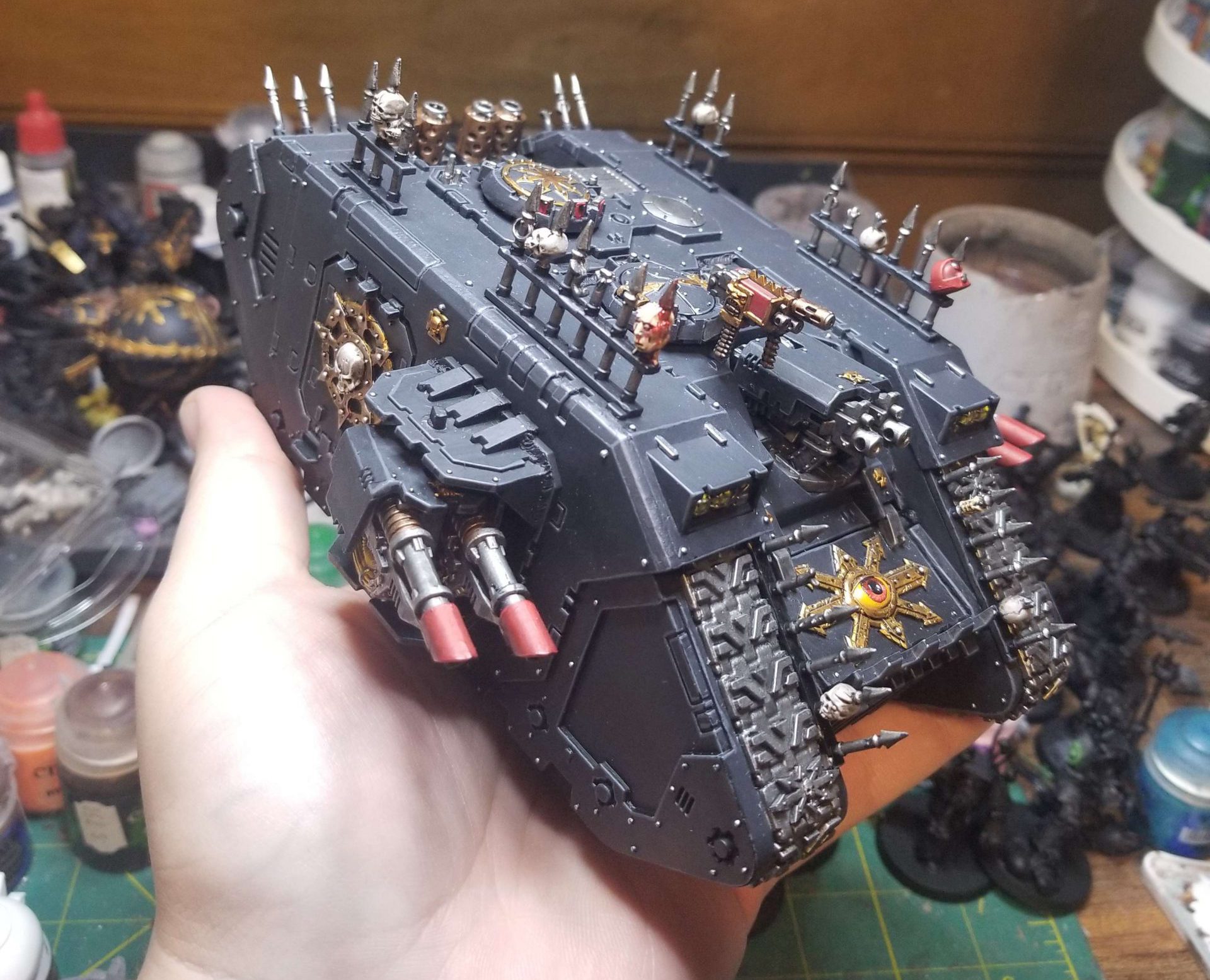 On top of that, the Land Raider is done, and I finished the Terminator Champion - who is my conversion of Falkus Kibre, a possessed Terminator who is a member of the Ezekarion. I'm also pretty happy with him, and as I write this I have the other four terminators about half done, with a plan to paint them over the next day and then I'll try and tackle the Possessed if I have time. But if I can't get them done, that's OK - they're more a nice to have and something I'll get to after I return.