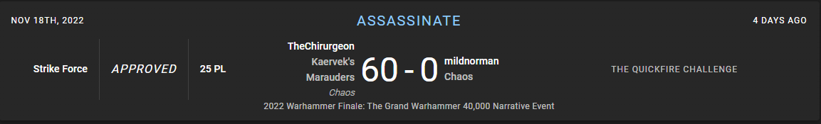 This is kind of a running theme with the GW narrative events and can be traced back to the NOVA narrative, and as a result is something that I associate with Mike Brandt specifically. He’s a big fan of these specific mechanics, and will tell you that he believes that nebulous orders are more immersive, that specific “go stand 6” away from this” type orders can break someone’s immersion in the event and turn everything into a game. But while I think he makes an interesting point here, I think these events need to find more of a middle ground, giving you a clearer ability to suss out what you need to do and also making the objectives more interesting and less specific than “hold the line” or “abhor the witch,” particularly since your ability to kill psykers seems intrinsically tied to whether your opponent even brought psykers. It’s reminiscent of the old Malestrom of War cards where you’d have cards in the Necron deck that would award you VP for manifesting a psychic power.
