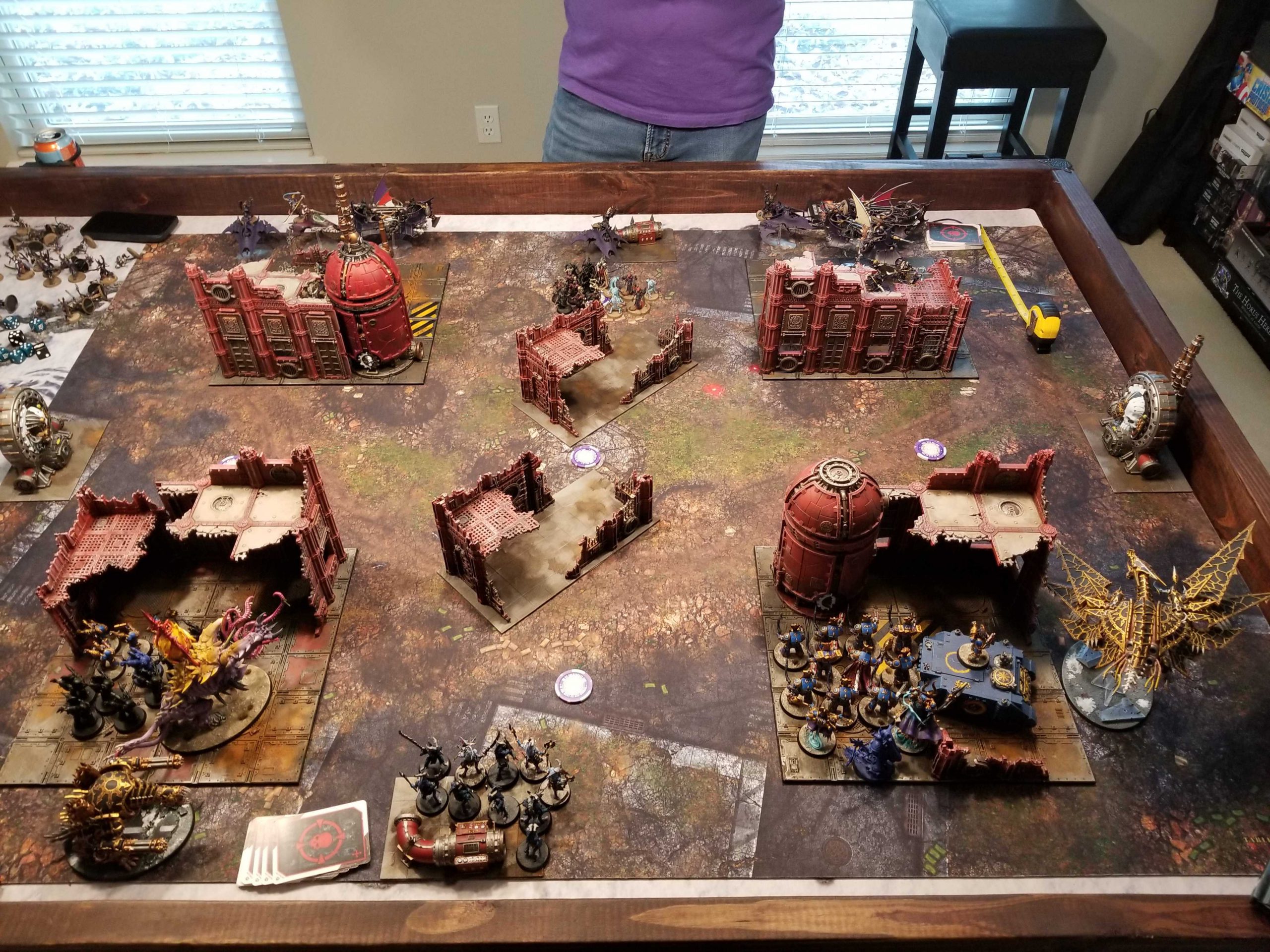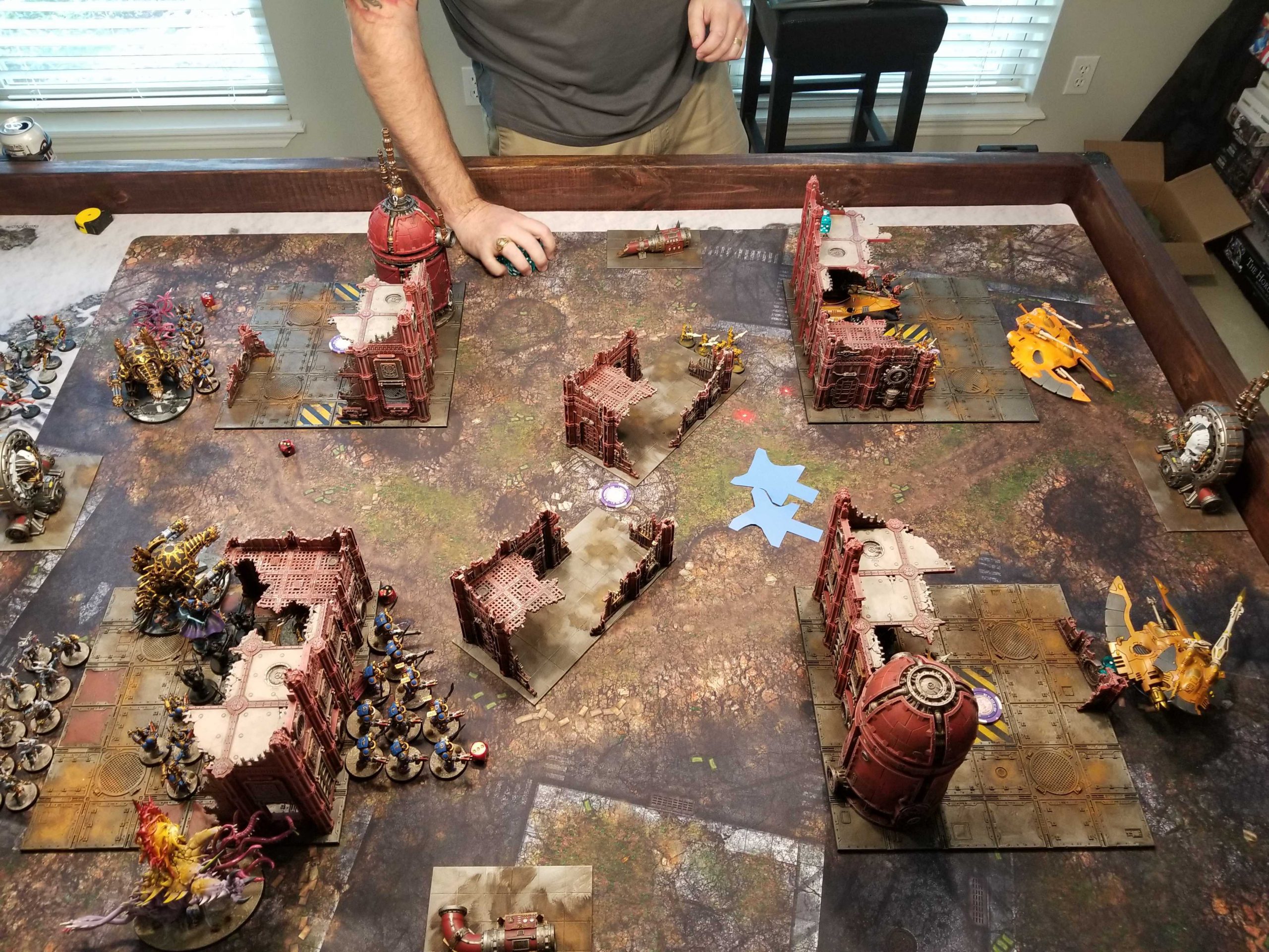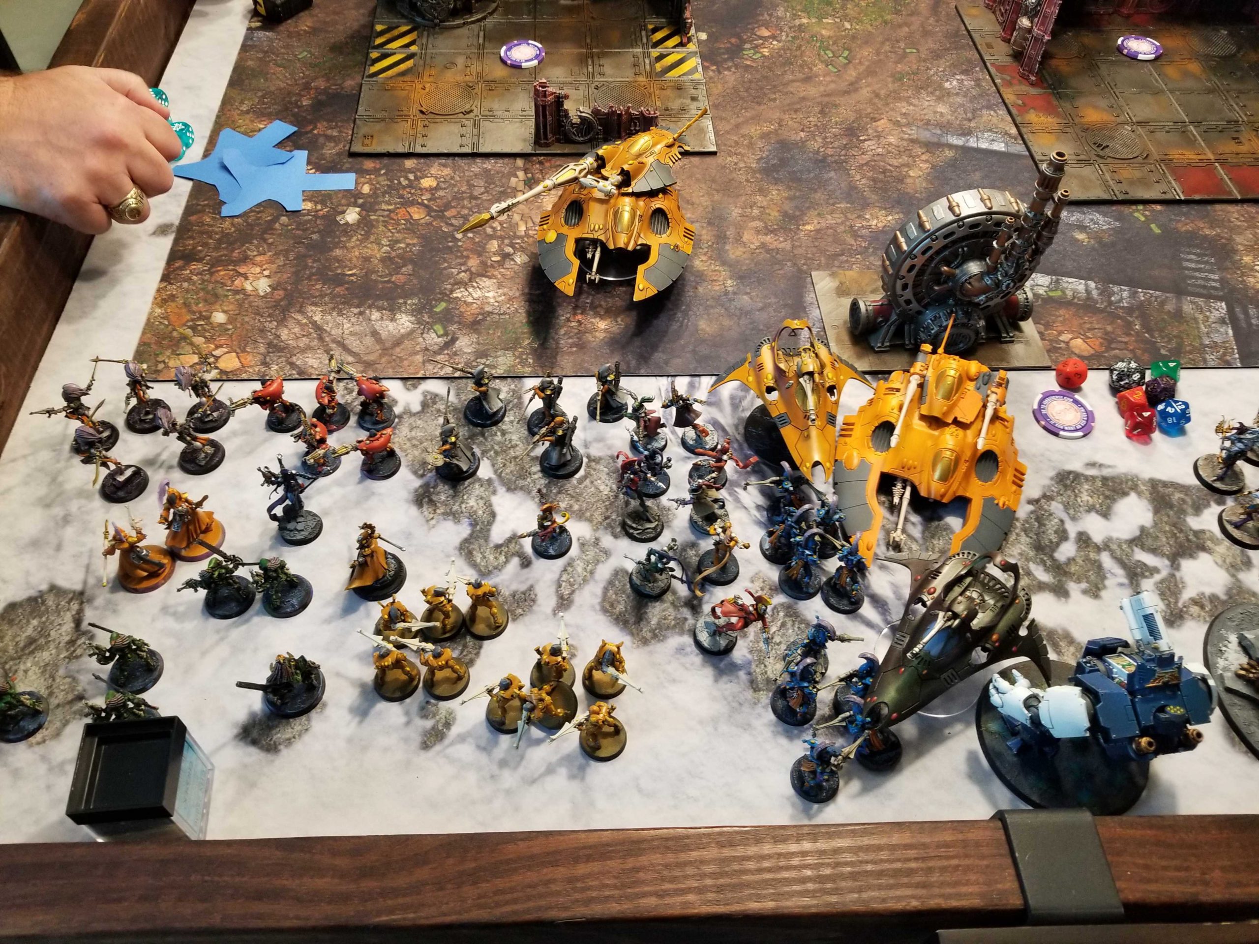 The first game, that list got to do exactly what it wanted to do while Rob’s list was hamstrung by the lack of advance deployment. I most the time I committed something to fight in that game it did huge damage, and the wracks and court were just annoying enough to kill to stay relevant. I didn’t burn through my CP super quickly and I played the objective well. I’m thrilled to be able to have a nice and decisive win under my belt here.